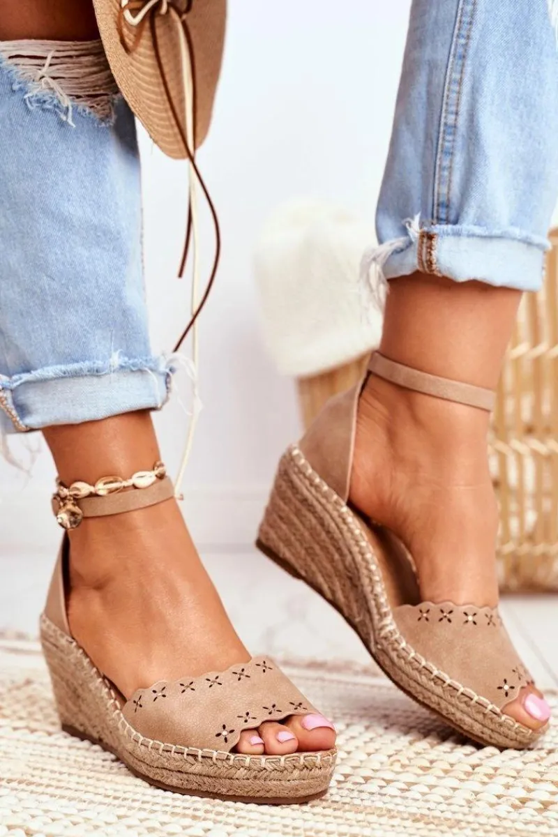 Best Evento Sandały Na Plecionej Koturnie Beżowe Sagittarius
