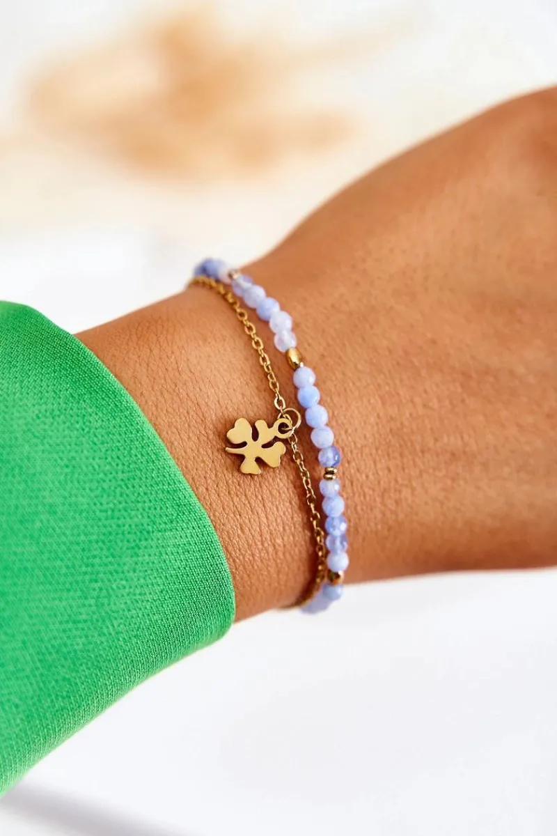Best Glam Chic Damska Bransoletka Z Koralikami Niebiesko-Złota