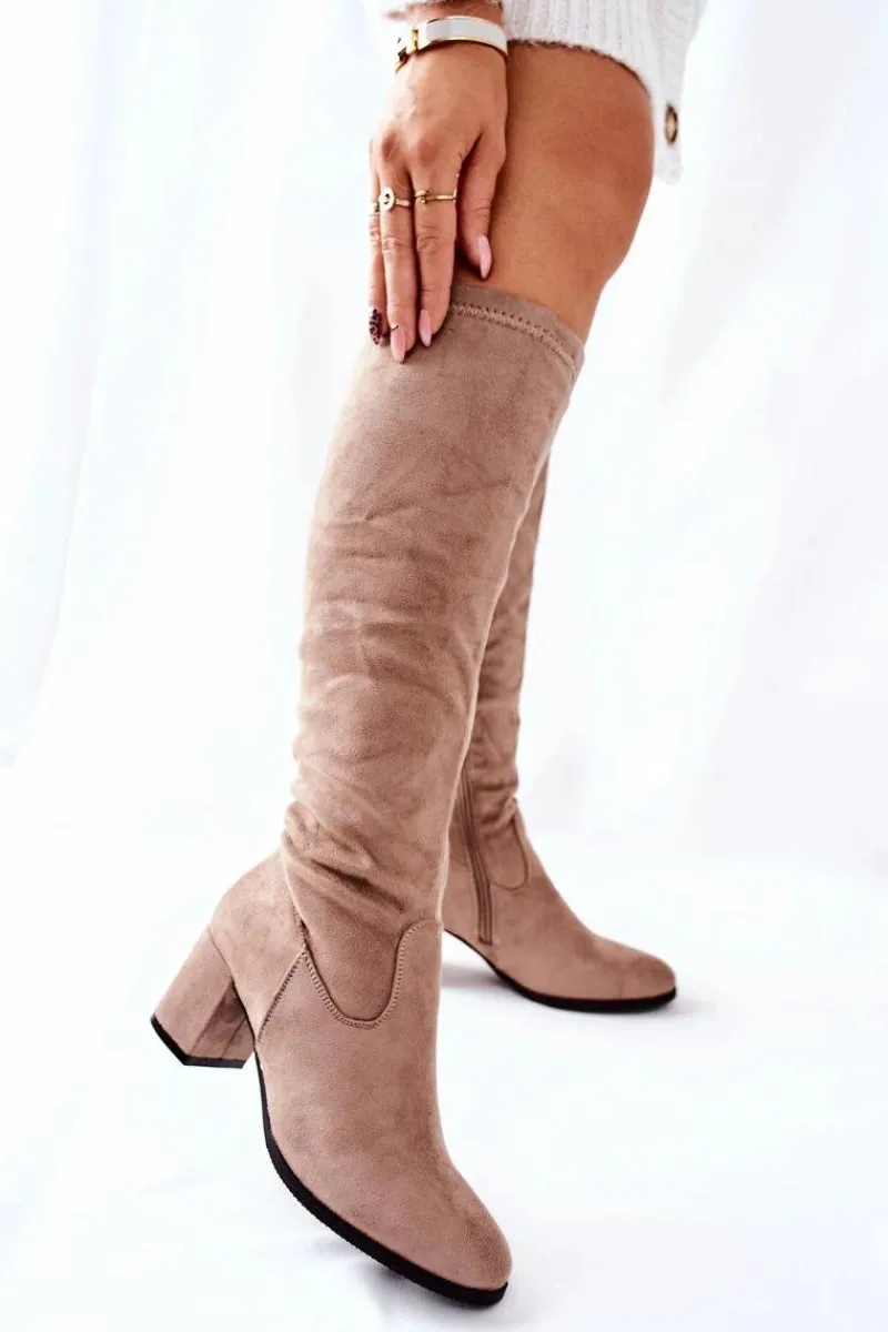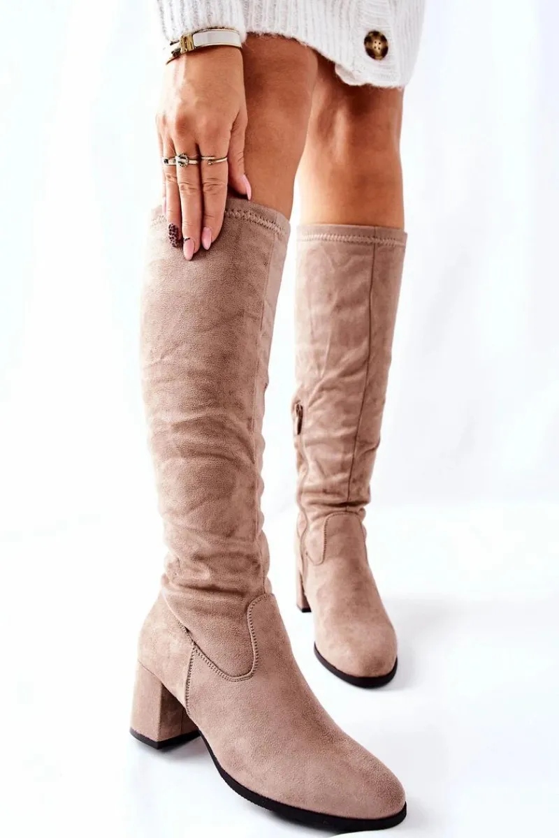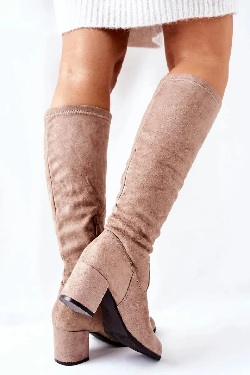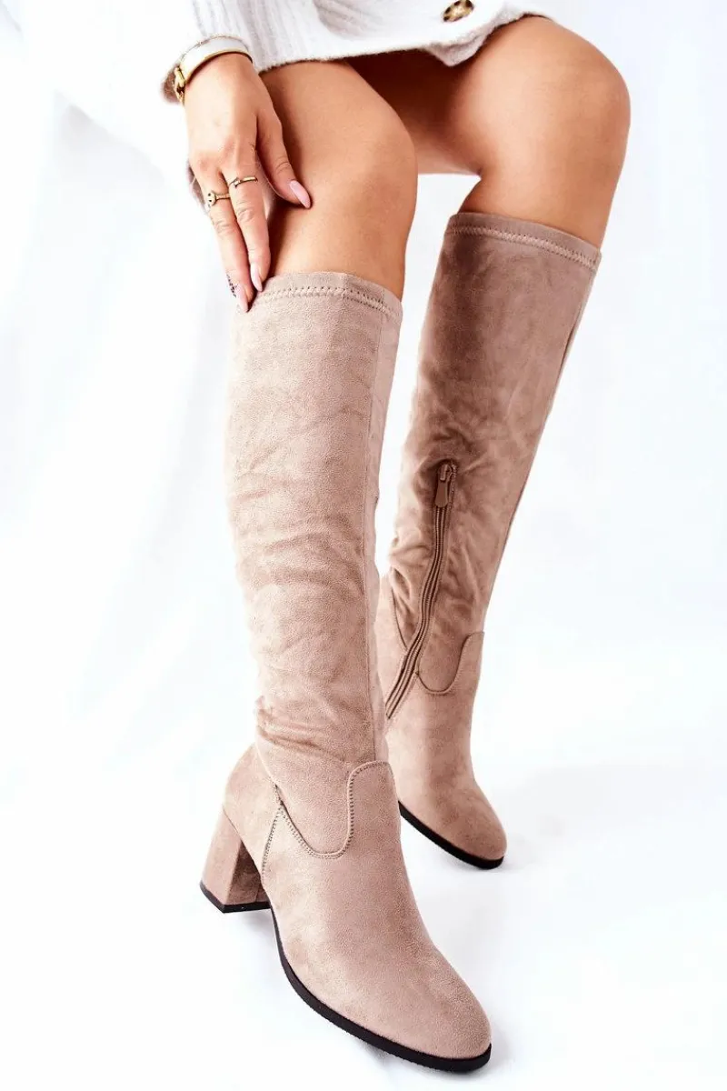 Piękny kolor, w połączeniu z zamszowym materiałem wygląda wprost cudownie! Delikatny słupek uniesie i wyeksponuje Twoją sylwetkę. Zakładanie ułatwi wszyty na boku suwak. Przy wyborze rozmiaru prosimy kierować tabelą rozmiarów.