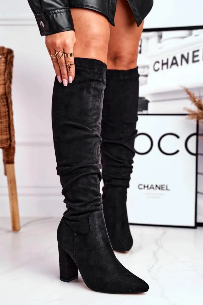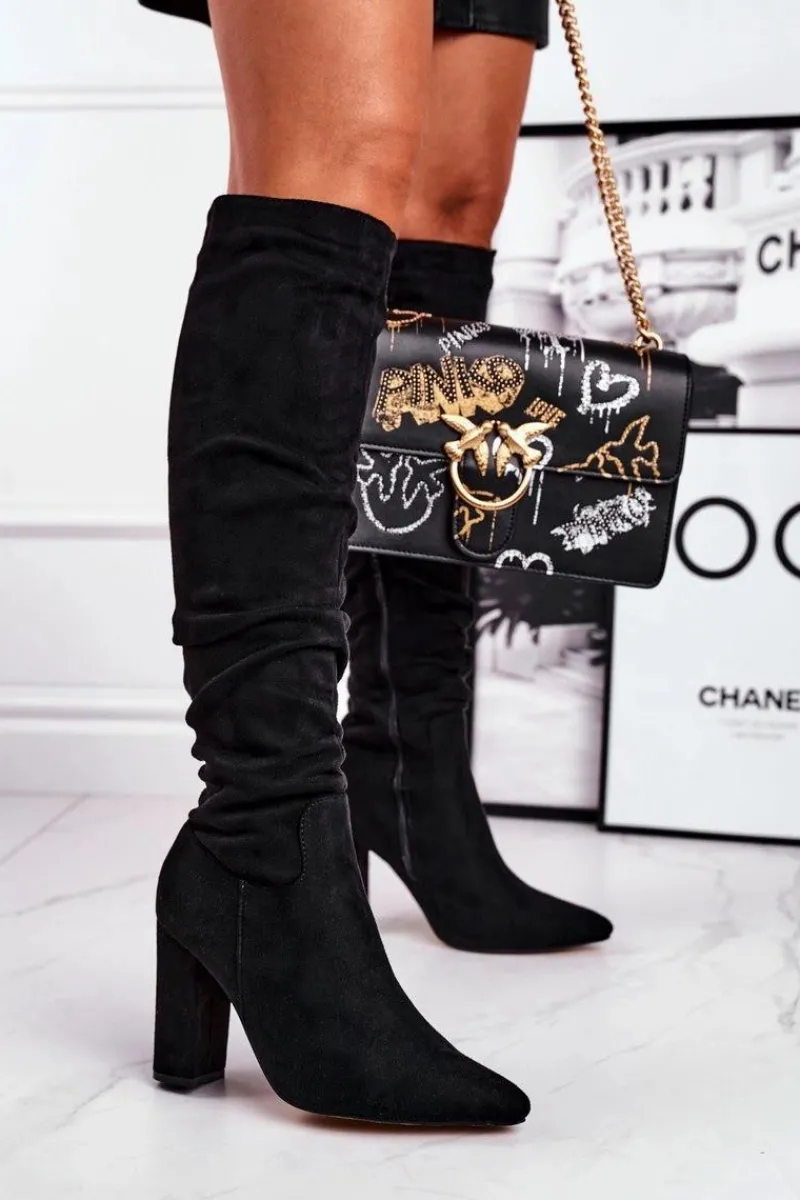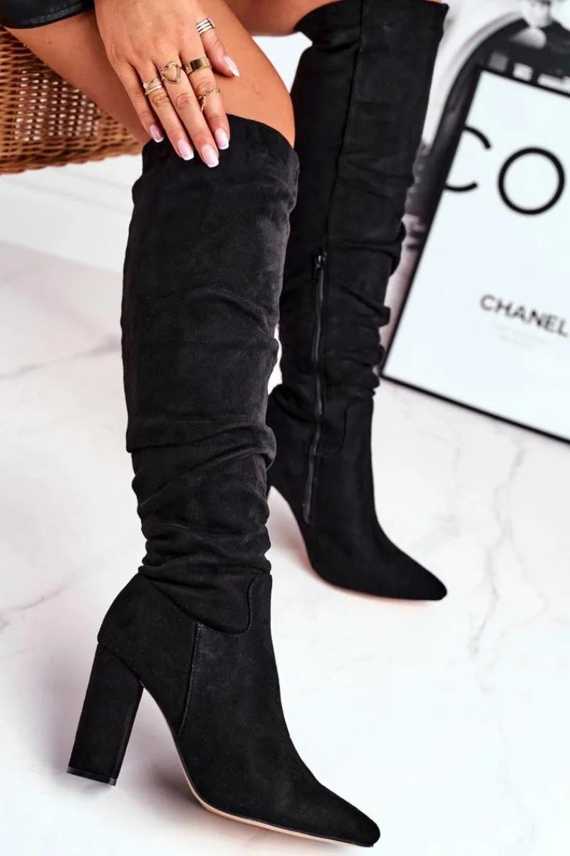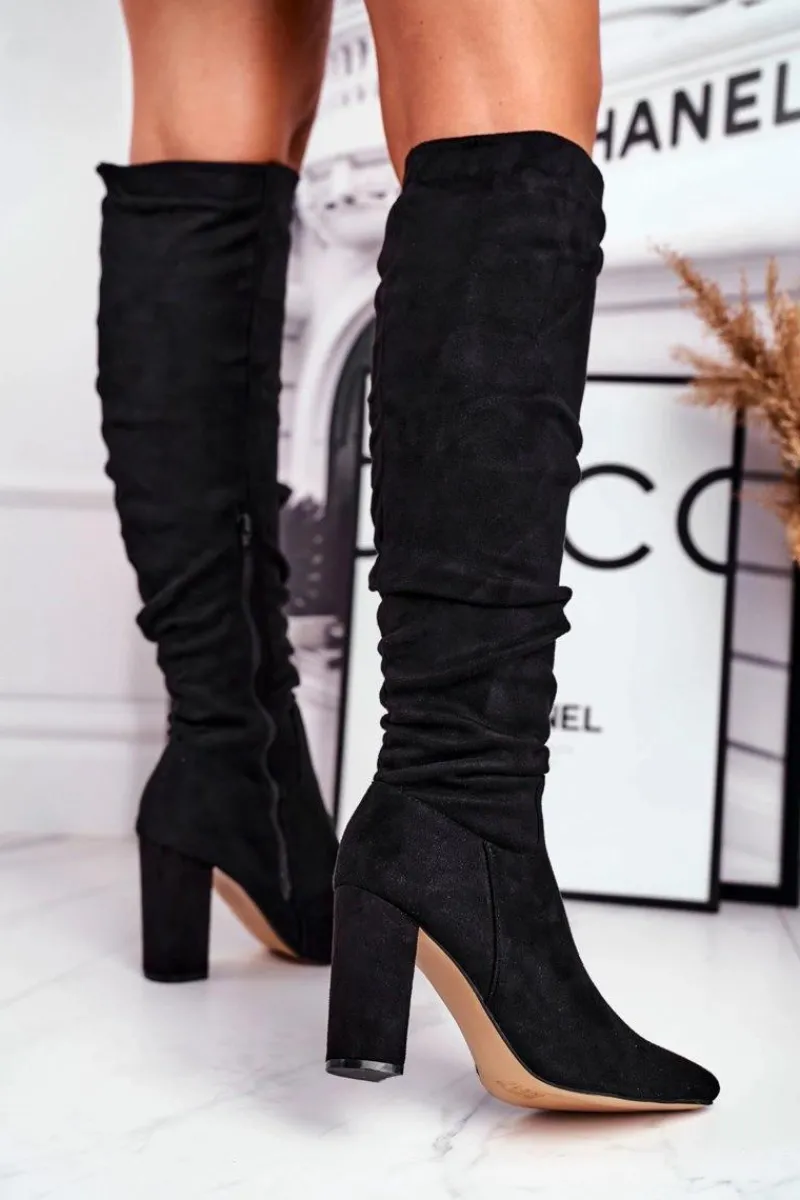Best Kozaki Damskie Na Słupku Zamszowe Czarne Pomestro Damskie Kozaki Na Obcasie|Kozaki Zamszowe