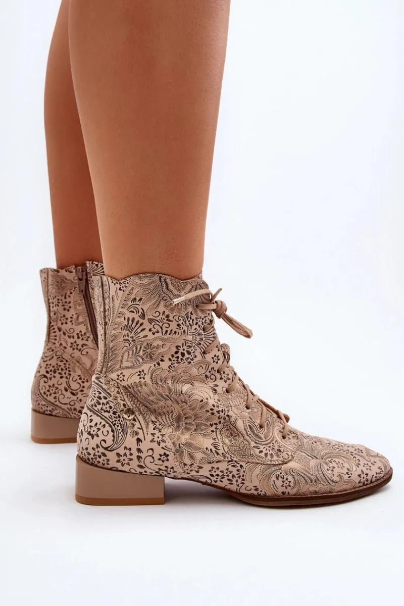 Botki damskie marki Maciejka to świetny wybór dla każdej kobiety ceniącej sobie jakość i wygodę. Wykonane ze skóry naturalnej. Zapinane na suwak, który umożliwi łatwe i szybkie zakładanie obuwia. Płaski obcas gwarantuje stabilność na każdym kroku. Wzorzysta cholewka sięgająca za kostkę. Ten ciekawy fason z pewnością uzupełni wiele różnych wiosennych stylizacji! Przy wyborze rozmiaru prosimy sugerować się tabelą rozmiarów.