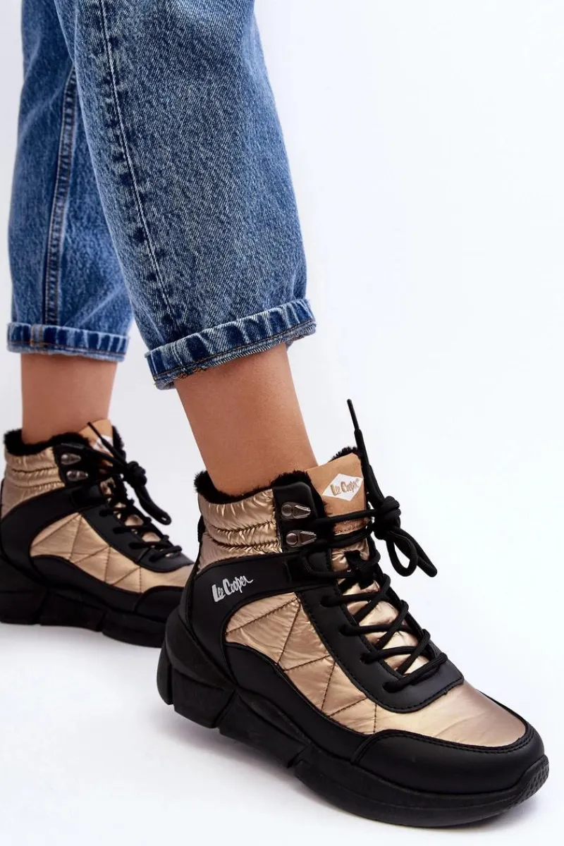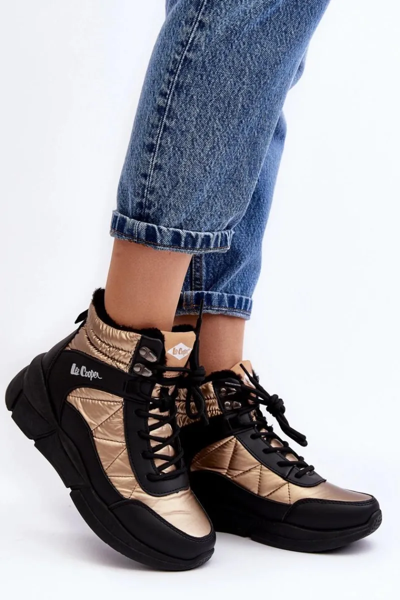 Klasyczne botki damskie marki Lee Cooper zostały wykonane z połączenia eko skóry i materiału tekstylnego. Osadzone na platformie z gumowego tworzywa. Model z cholewką za kostkę. Dodatkowo zapiętek jest usztywniany. Botki posiadają solidne sznurowanie umożliwiające odpowiednie dopasowanie do tęgości nogi. Przy wyborze rozmiaru prosimy sugerować się tabelą rozmiarów.