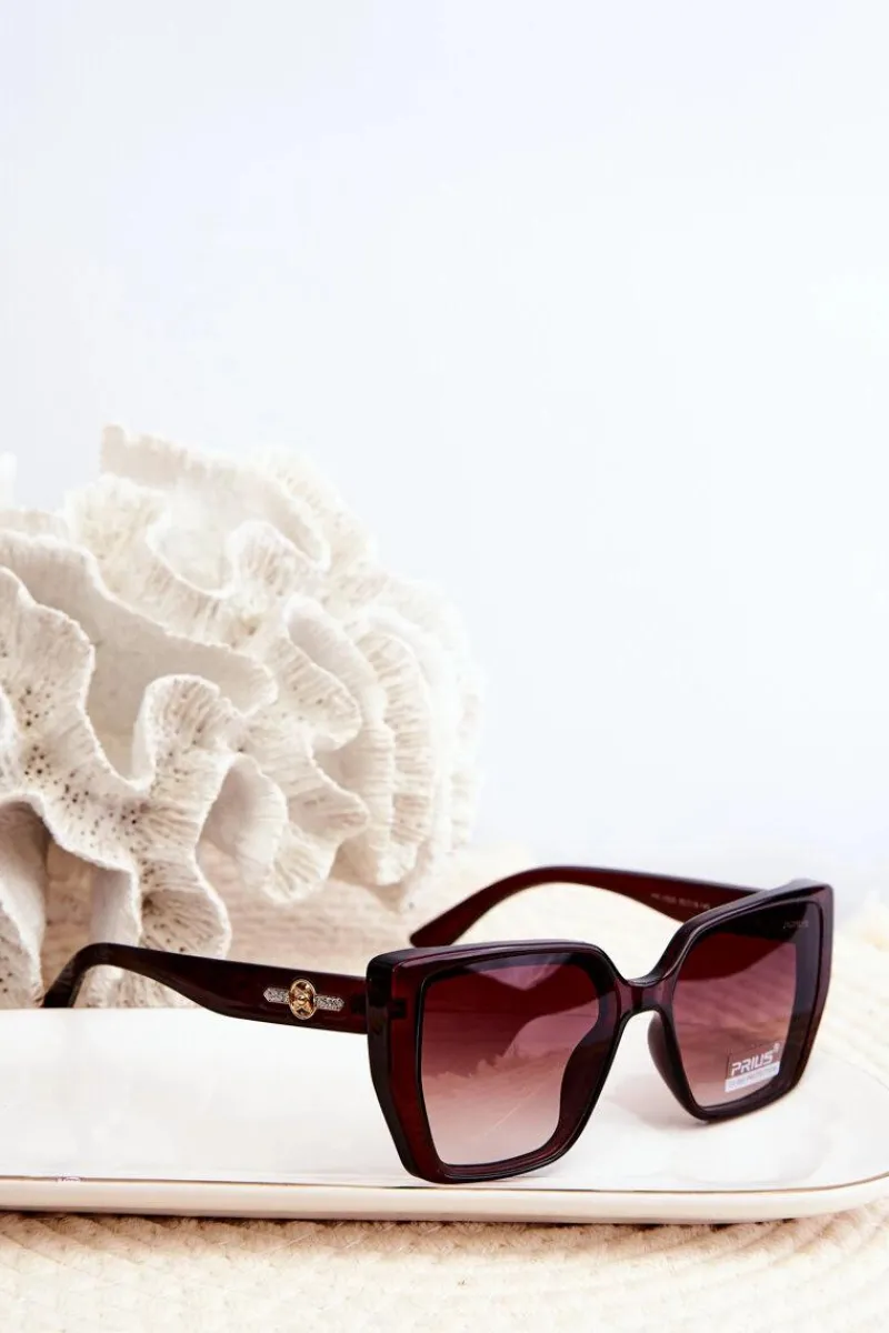 Klasyczne damskie okulary przeciwsłoneczne z eleganckim złotym detalem. Zapewniają skuteczną ochronę przed szkodliwym promieniowaniem, łącząc styl z funkcjonalnością. Idealne do codziennych letnich stylizacji.