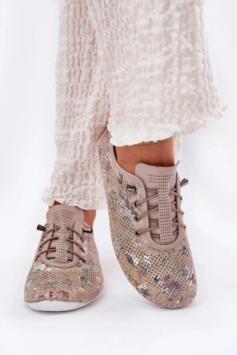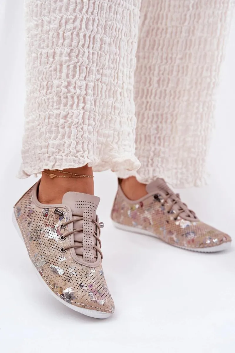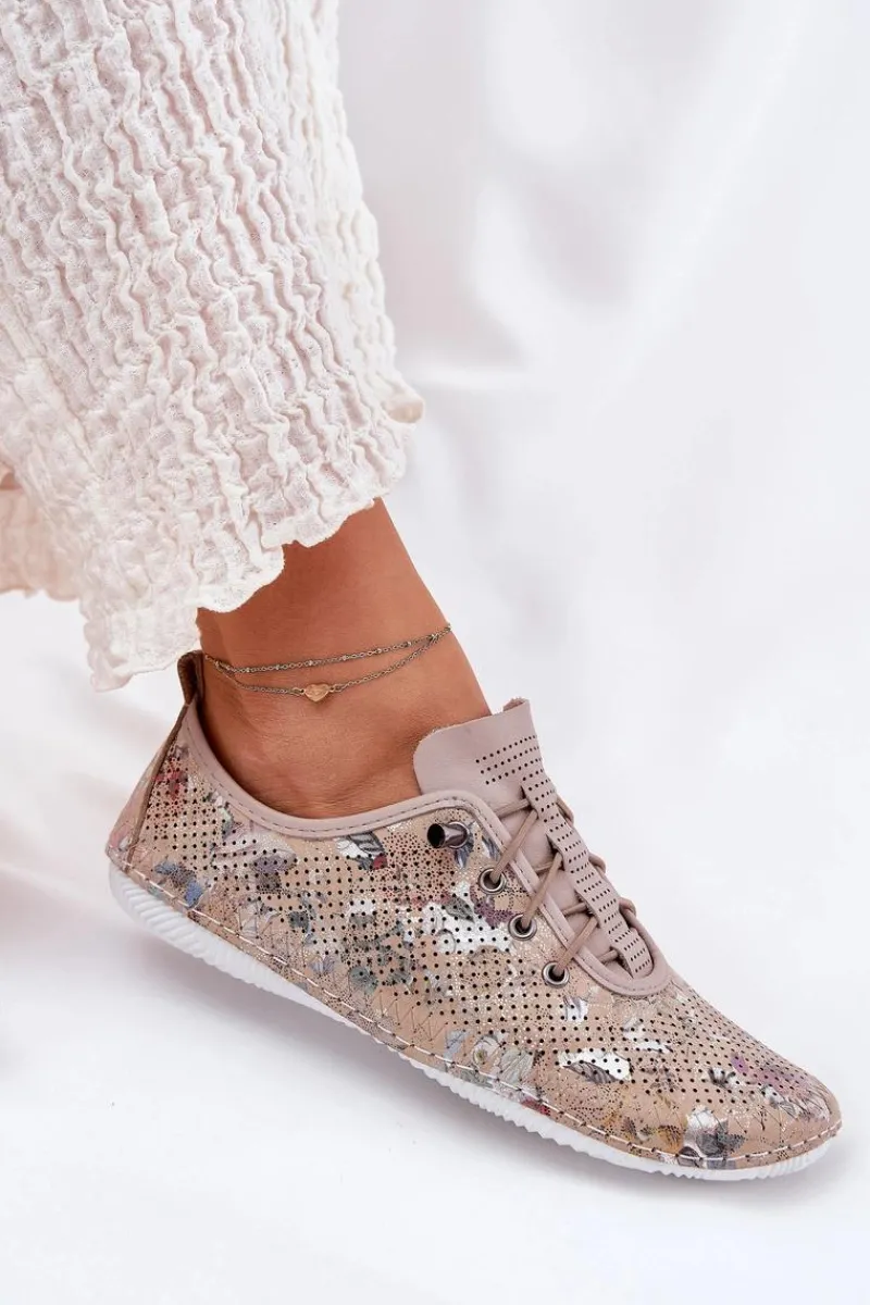 Damskie półbuty z naturalnej skóry, które łączą komfort z funkcjonalnością. Elastyczne gumki imitujące sznurówki ułatwiają zakładanie i gwarantują idealne dopasowanie do stopy. Szerokie, zaokrąglone noski zapewniają wygodę przez cały dzień, a skórzana wkładka zapewnia odpowiednią amortyzację. To świetny wybór do codziennych stylizacji, oferujący zarówno styl, jak i komfort. Przy wyborze rozmiaru prosimy sugerować się tabelą rozmiarów.