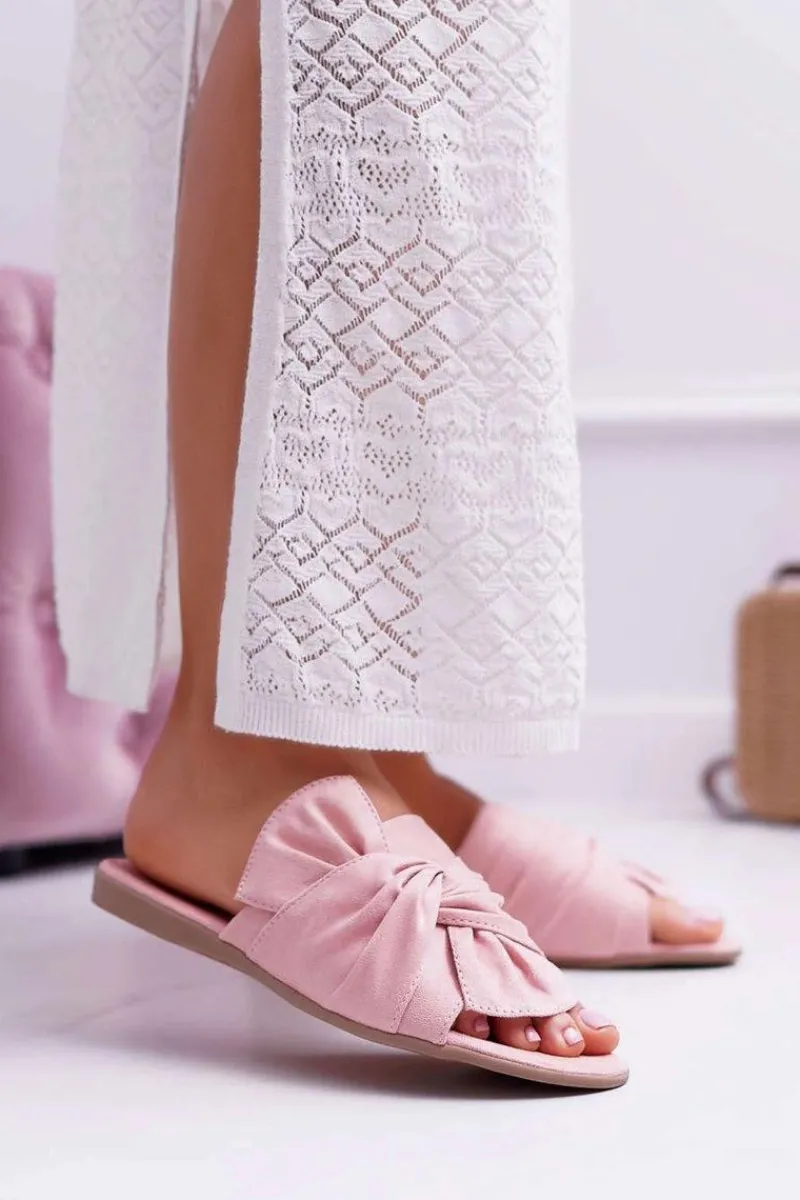 Hot Boto Klapki Z Kokardą I Ozdobnym Misiem Jasnoróżowe Suzy