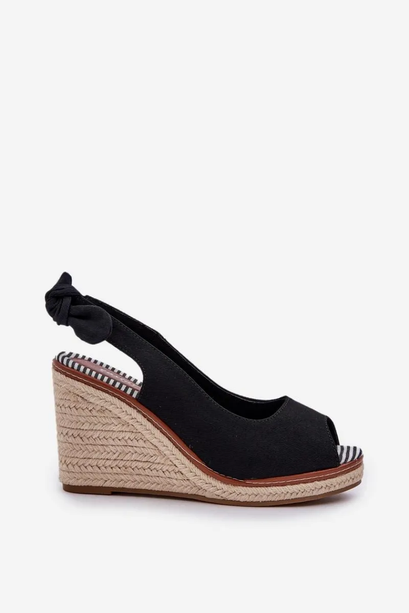 Sandały damskie z materiału tekstylnego to lekka i wygodna propozycja na ciepłe dni. Osadzone na koturnie z plecionką. Z tyłu znajduje się pętelka. Te sandały świetnie komponują się w letnich stylizacjach, łącząc komfort z modnym, naturalnym wyglądem. Idealne na wakacyjne spacery czy codzienne wyjścia. Przy wyborze rozmiaru prosimy sugerować się tabelą rozmiarów.