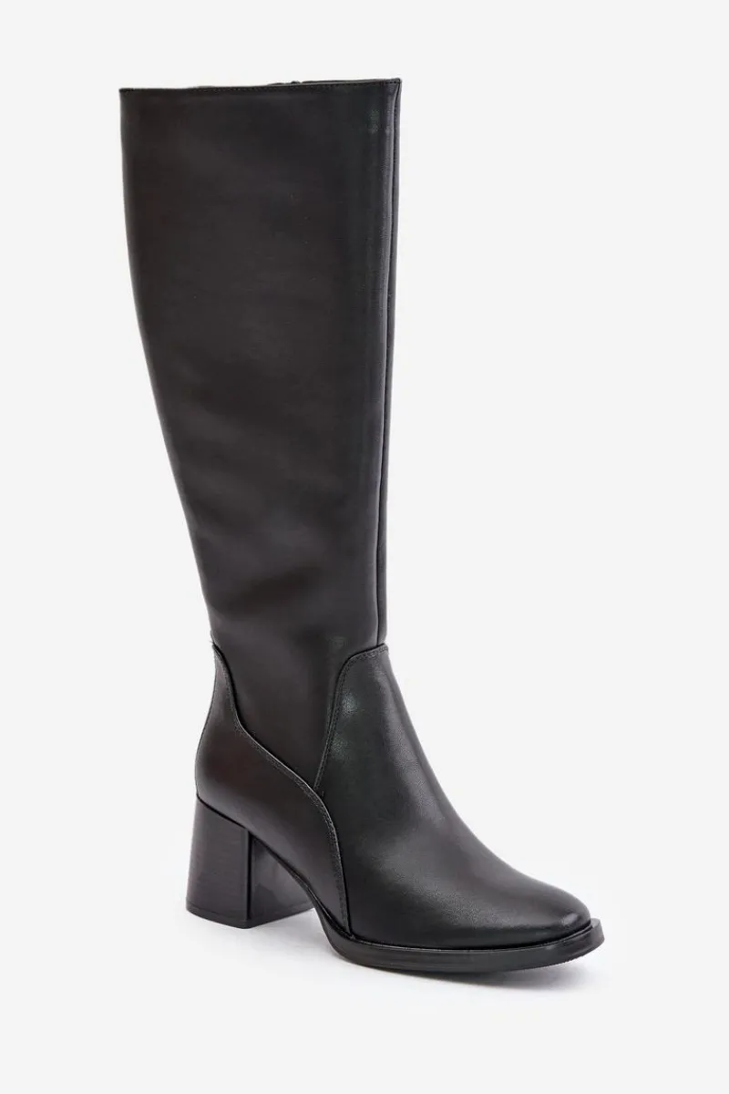 Eleganckie skórzane kozaki przed kolano to doskonała propozycja na chłodniejsze dni. Wykonane z wysokiej jakości skóry, ocieplane wnętrze zapewnia ciepło i komfort. Model zapinany na zamek dla wygody zakładania, a stabilny obcas typu słupek dodaje stylowego podkreślenia sylwetki. Zaokrąglone noski. Model ten idealnie pasuje do eleganckich stylizacji. Przy wyborze rozmiaru prosimy sugerować się tabelą rozmiarów.