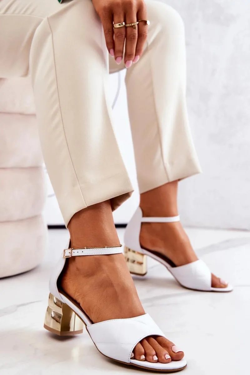 Wygodne sandały to marzenie każdej kobiety! Lustrzany oraz stabilny słupek zapewni Ci gustowny wygląd oraz wygodę. Skórzany, przeszywany materiał z pewnością sprawi, że zostaniesz zauważona! Sandałki są zapinane na regulowany pasek ze sprzączką. Już dziś wybierz ofertę naszą ofertę i kup teraz w doskonale niskiej cenie! Przy wyborze rozmiaru prosimy kierować tabelą rozmiarów.