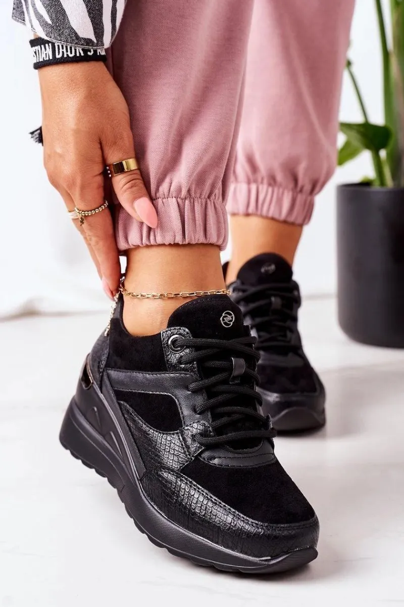 Sneakersy na koturnie wykonane z połączenia eko zamszu oraz eko skóry w delikatny zwierzęcy wzór. Przy wyborze rozmiaru prosimy kierować się tabelą rozmiarów.