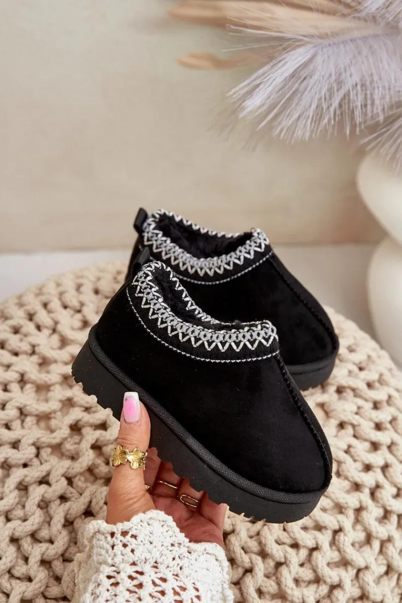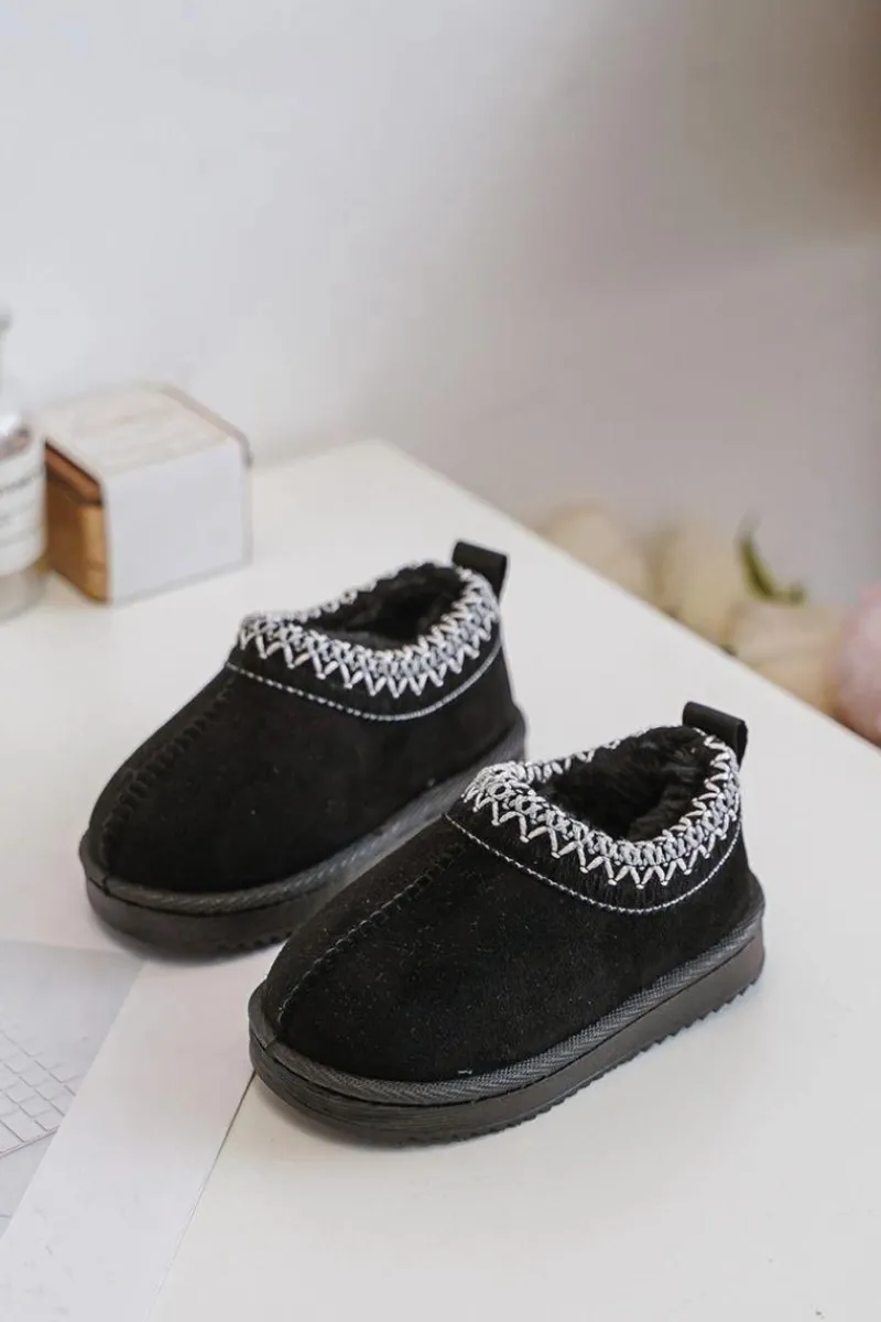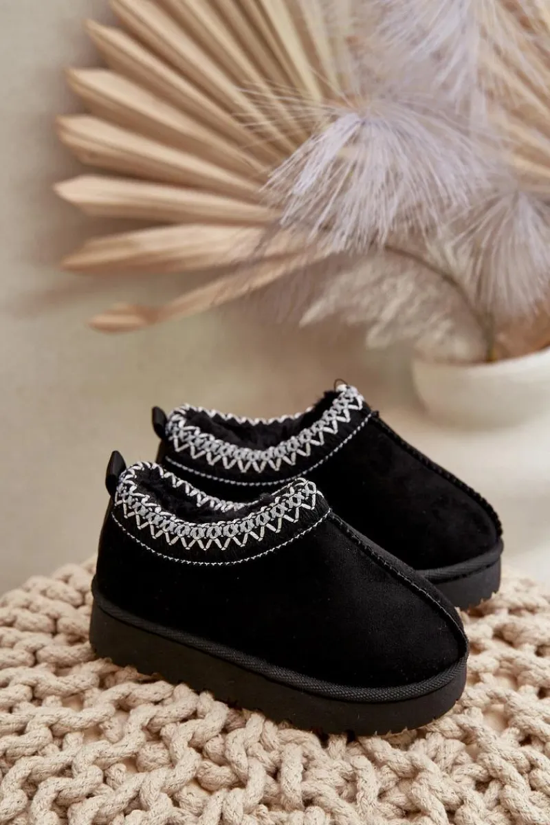 Śniegowce dziecięce z uroczym wzorem na górze cholewki. W środku ocieplone syntetycznym, grubym futerkiem, co zapewni ciepło w najmroźniejsze dni. Wykonane z eko zamszu. Osadzone na grubej podeszwie, która świetnie odizoluje od zimnego podłoża. Model ten dostępny jest również w rozmiarach damskich. Stwórz komplet mama + dziecko! Przy wyborze rozmiaru prosimy kierować tabelą rozmiarów.