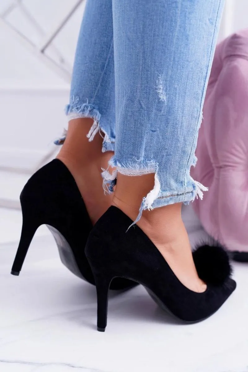 Best Szpilki damskie Czarne Zamszowe Lu Boo Pompon Damskie Szpilki Zamszowe