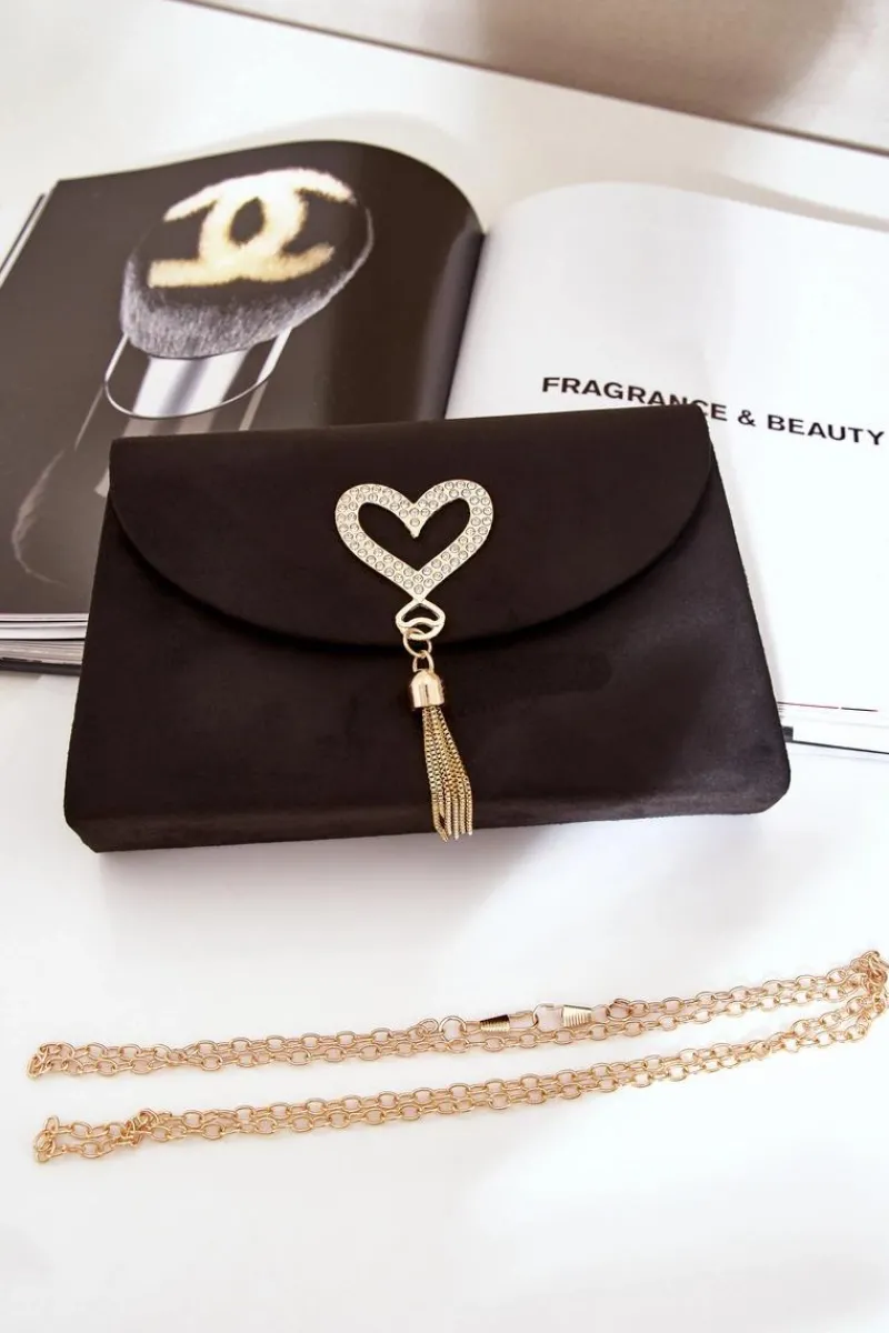 Elegancka kopertówka wykonana z eko zamszu, idealna na wyjątkowe okazje. Zapinana na klips magnetyczny, zapewniający wygodę i bezpieczeństwo. Wewnątrz znajduje się praktyczna mała kieszonka na drobiazgi. Torebka wyposażona w odpinany pasek w formie łańcuszka, co pozwala na noszenie jej na różne sposoby. Stylowy dodatek podkreślony ozdobnym sercem, który dodaje jej uroku i wyjątkowego charakteru.
