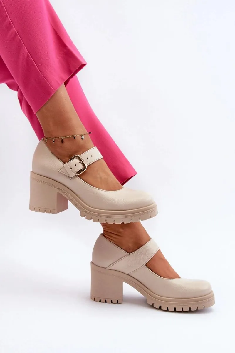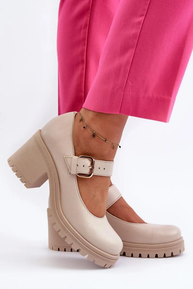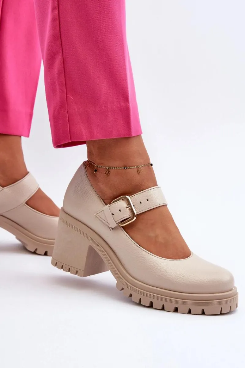 Eleganckie czółenka wykonane z naturalnej skóry z dbałością o każdy detal. Miękka wkładka ze skóry naturalnej zapewni komfort podczas użytkowania. Noski zaokrąglone. Zapinane na regulowany pasek ze sprzączką. Masywny obcas zapewni stabilność na każdym kroku. Ten niezwykle modny fason koniecznie powinien znaleźć się w Twojej wiosennej garderobie! Przy wyborze rozmiaru prosimy sugerować się tabelą rozmiarów.