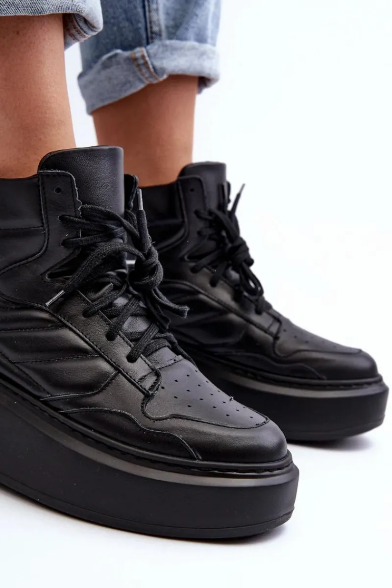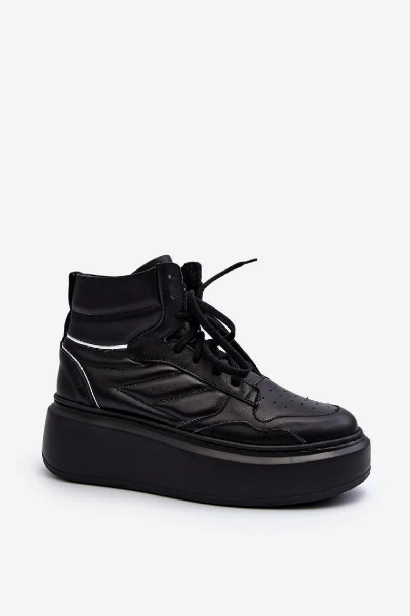 Modne buty sportowe damskie wykonane ze skóry naturalnej. Osadzone na masywnej platformie. Cholewka za kostkę. Noski zaokrąglone. Model z klasycznym sznurowaniem. Idealne na wiosenne dni! Fason ten na pewno przypadnie Ci do gustu! Przy wyborze rozmiaru prosimy kierować tabelą rozmiarów.