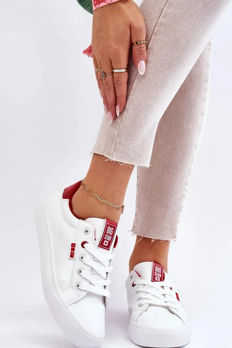Tenisówki damskie od polskiej marki BIG STAR. Buty wykonane są z wysokiej jakości skóry ekologiczne, dobrze dopasowują się do kształtu stopy. Przy wyborze rozmiaru prosimy sugerować się tabelą rozmiarów.