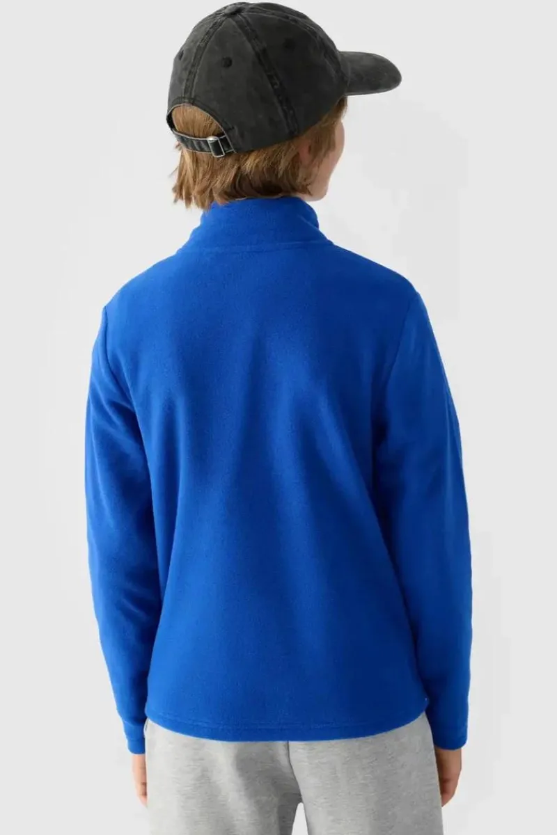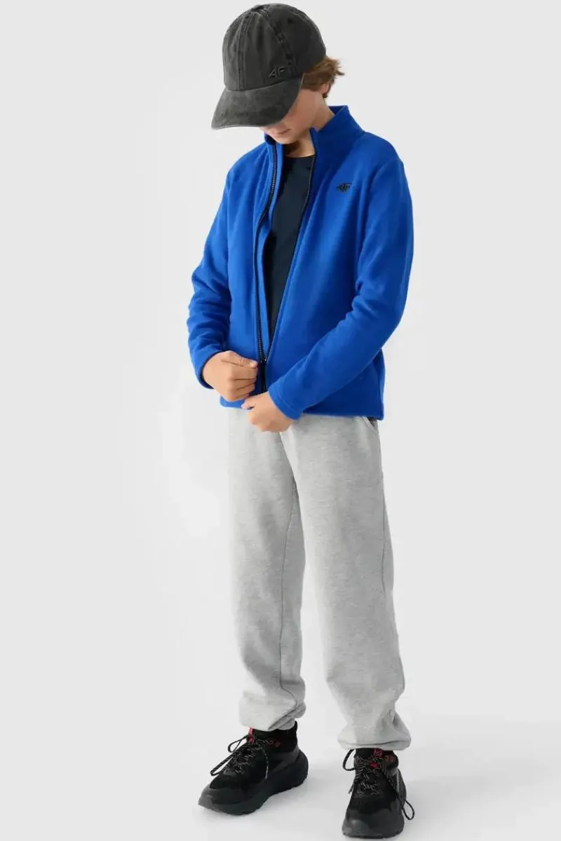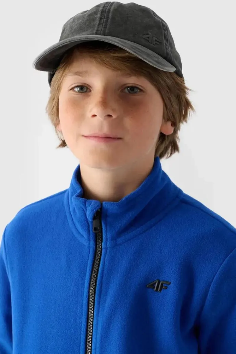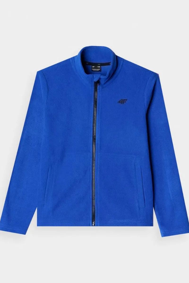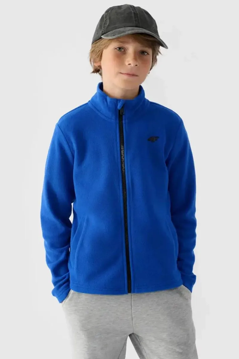 Bluza z polaru rozpinana chłopięca jest wykonana z gładkiego i miękkiego w dotyku polaru, który cechuje się bardzo dobrą izolacją termiczną, a przy tym oddycha i szybko schnie. Technologia 4F Warm wspiera komfort cieplny. Bluza posiada stójkę, która osłania szyję. Klasycznie wykończone mankiety. Po bokach znajdują się 2 kieszenie otwarte. Zapinana na jednokierunkowy zamek główny. Posiada krój regular, który wygodnie dopasowuje się do sylwetki oraz standardową długość sięgającą do linii bioder. Materiał główny: Poliester 100%