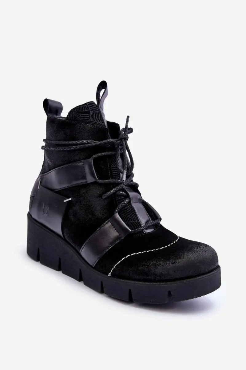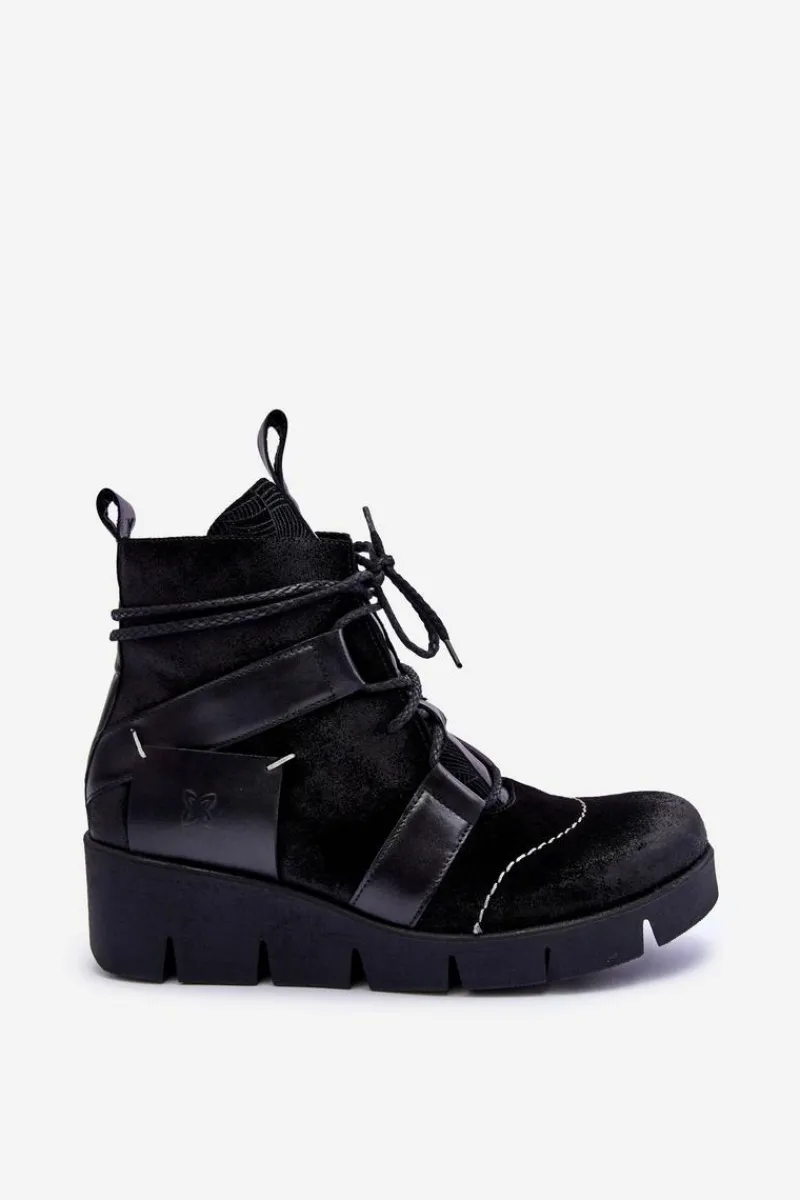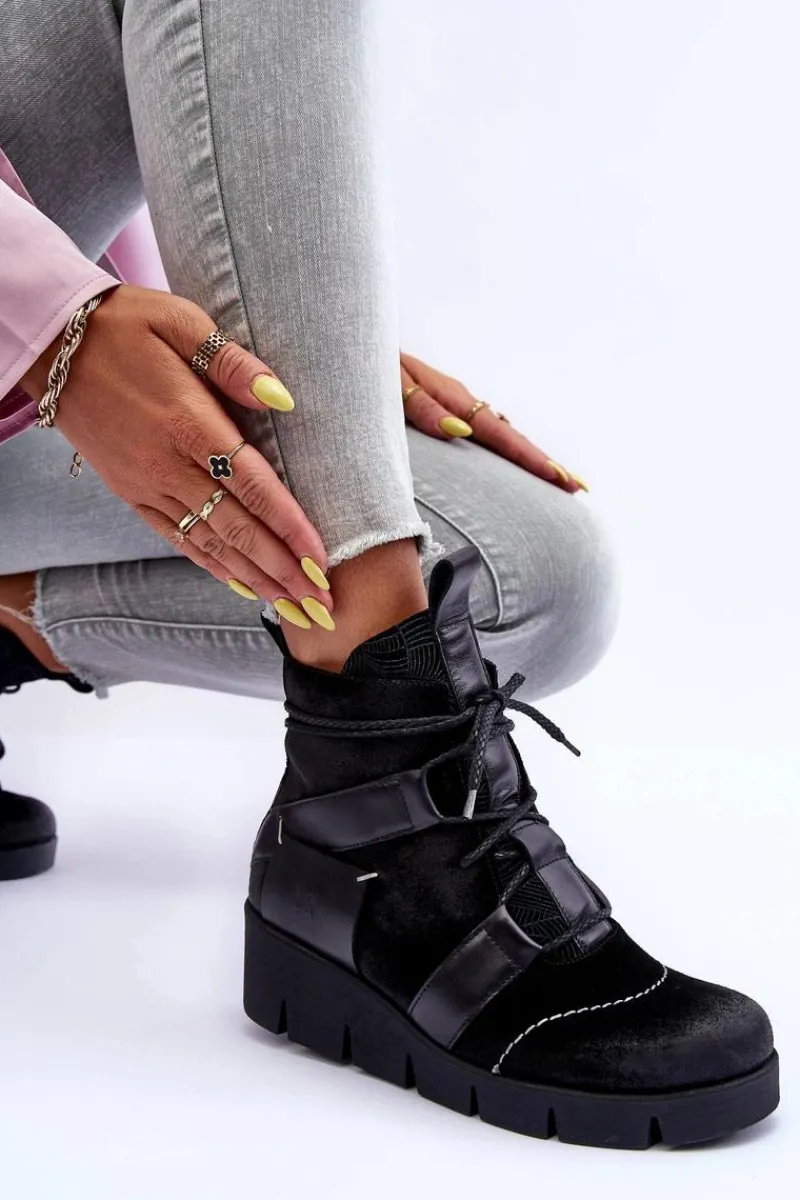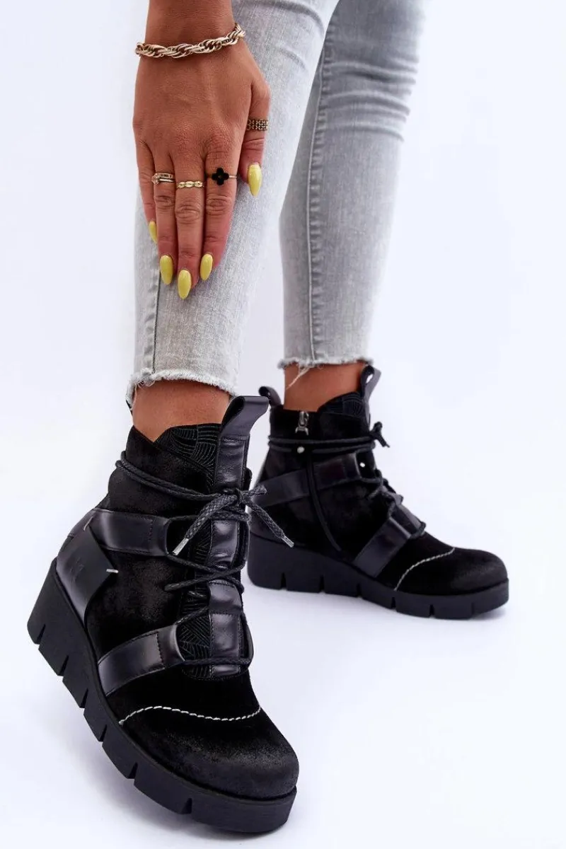 Botki damskie marki Maciejka zostały wykonane z najwyższej jakości skór naturalnych. Zapinane na suwak oraz wzbogacone dodatkowym sznurowaniem. Model ten osadzony został na koturnie. Miękka wkładka zapewni komfort podczas użytkowania. Przy wyborze rozmiaru prosimy sugerować się tabelą rozmiarów.