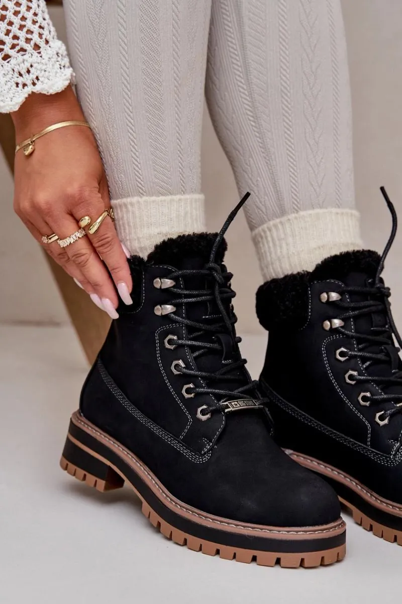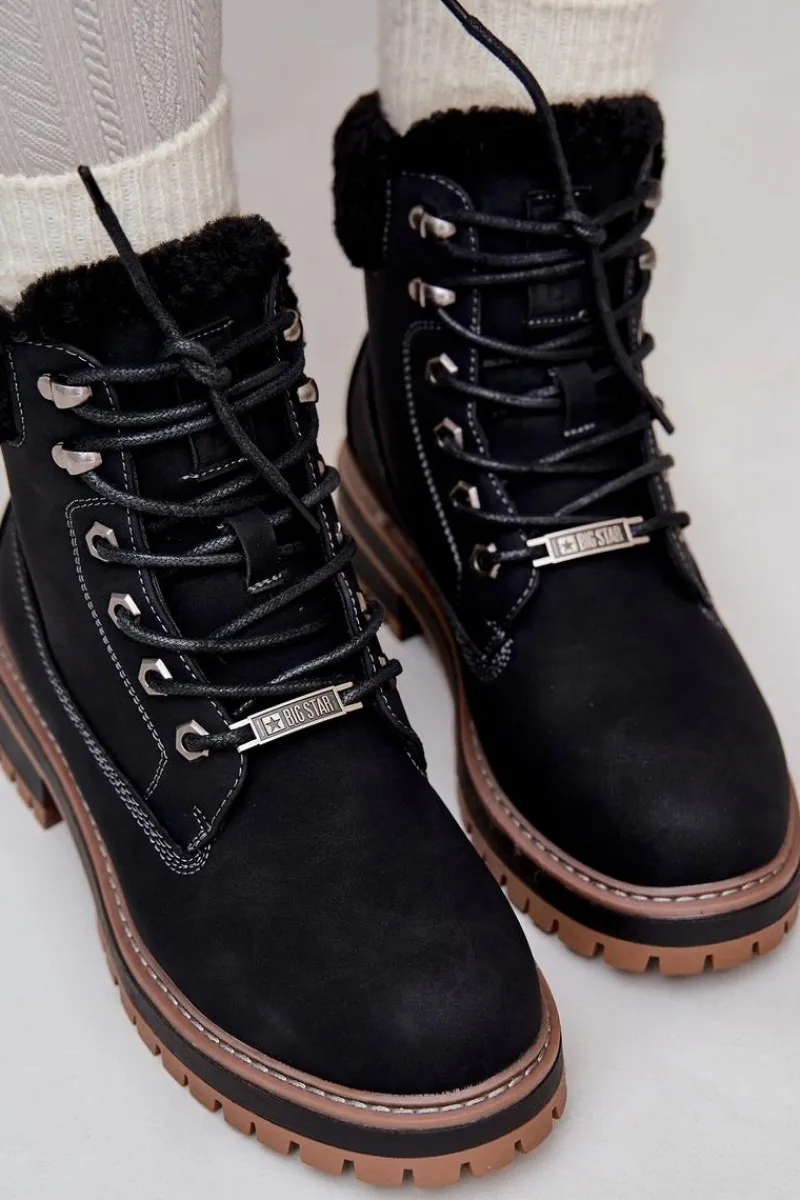 Damskie trapery od marki Big Star. Wykonane z trwałych materiałów, świetnie sprawdzają się w różnych warunkach pogodowych oraz podczas aktywności na zewnątrz. Model klasycznie sznurowany. Zaokrąglony nosek zapewnia wystarczającą przestrzeń dla palców, dzięki czemu buty są wygodne przez cały dzień. Środek ocieplony kocem obuwniczym. Przy wyborze rozmiaru prosimy sugerować się tabelą rozmiarów.
