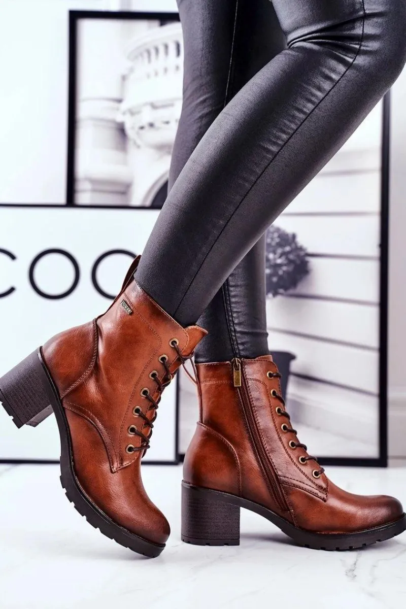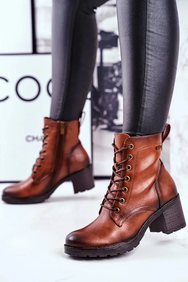 Botki Sznurowane|Botki Na Słupku>Buty damskie Vinceza Botki Damskie Na Słupku Ocieplane Brązowe Fiber