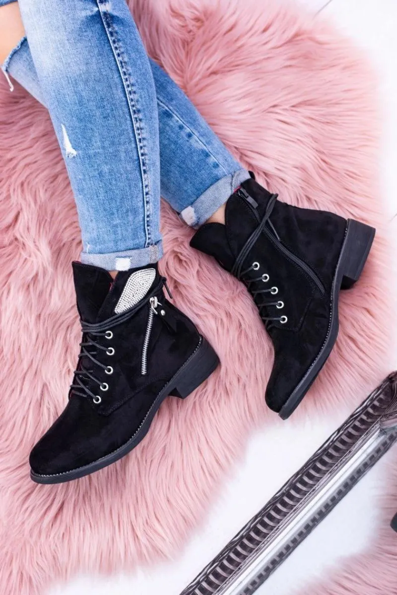 Botki Sznurowane|Botki Płaskie>Boto Damskie Ocieplane Botki Na Zamek Cekiny Zamsz Cortina