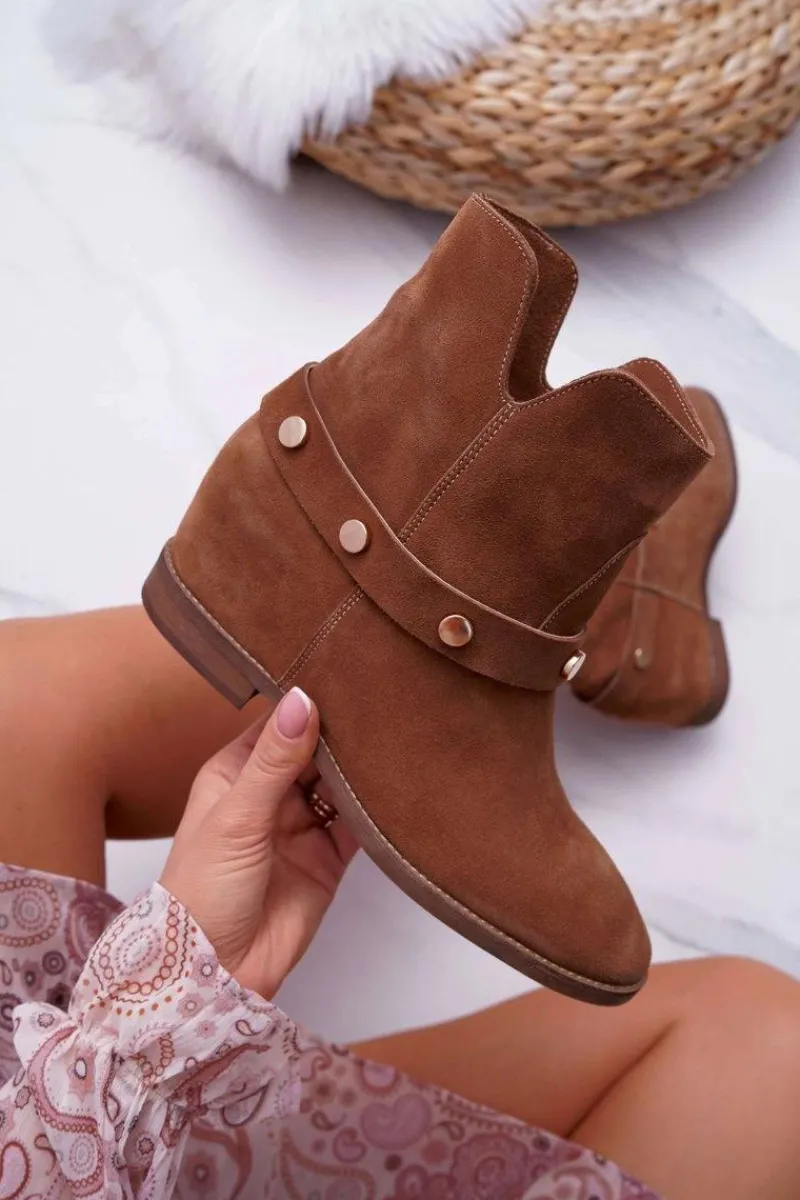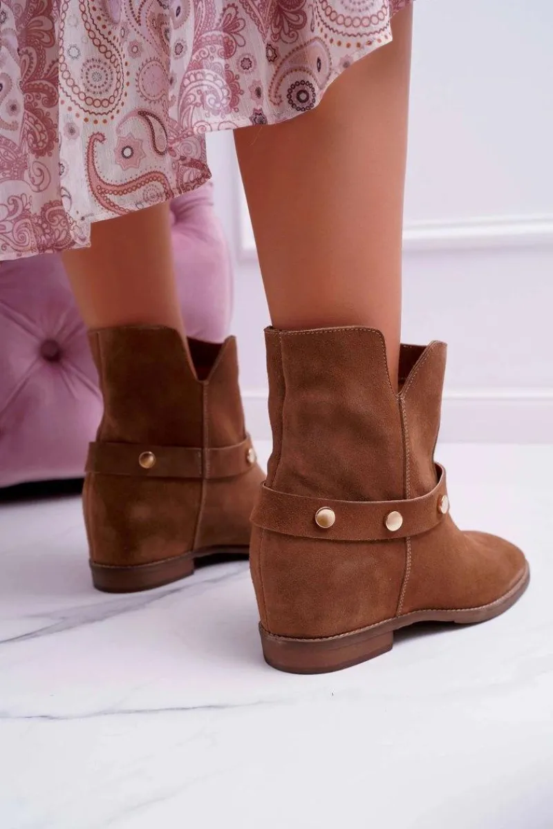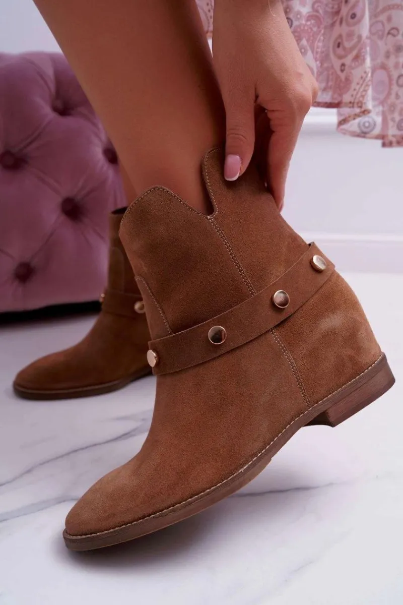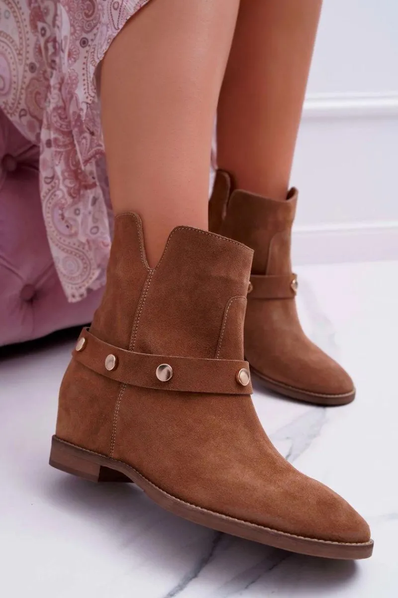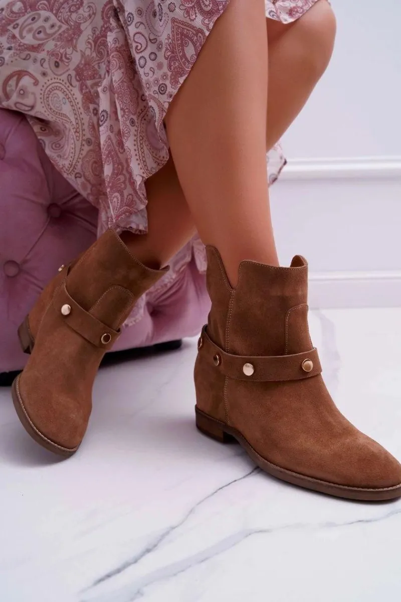 Botki Wiosenne|Botki Na Koturnie>Laura Messi Botki Damskie 1890 Skóra Zamsz Ciemny Camel Darmah