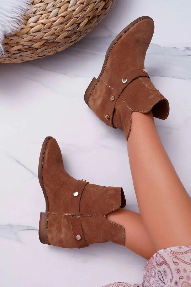 Kolekcja naszych skórzanych znów się powiększyła! Model z najnowszej kolekcji renomowanej firmy Laura Messi może być Twój! Komfort w każdej sytuacji. Wierzch wykonany z wysokiej jakości skóry zamszowej. Wsuwane botki na ukrytym delikatnym koturnie w stylu kowbojek.Przy wyborze rozmiaru prosimy sugerować się tabelą rozmiarów.