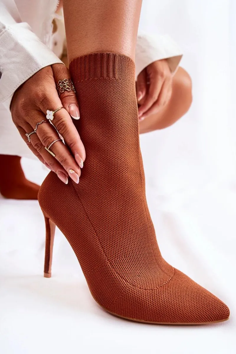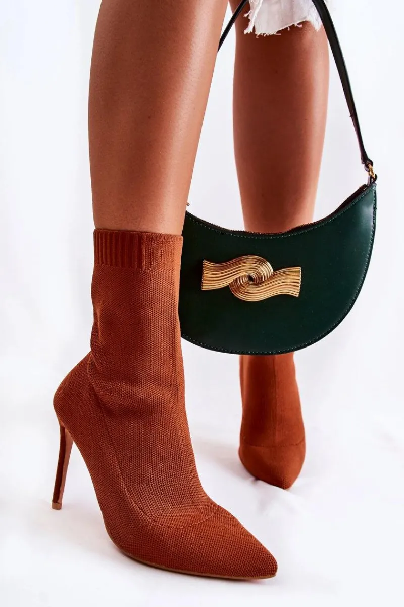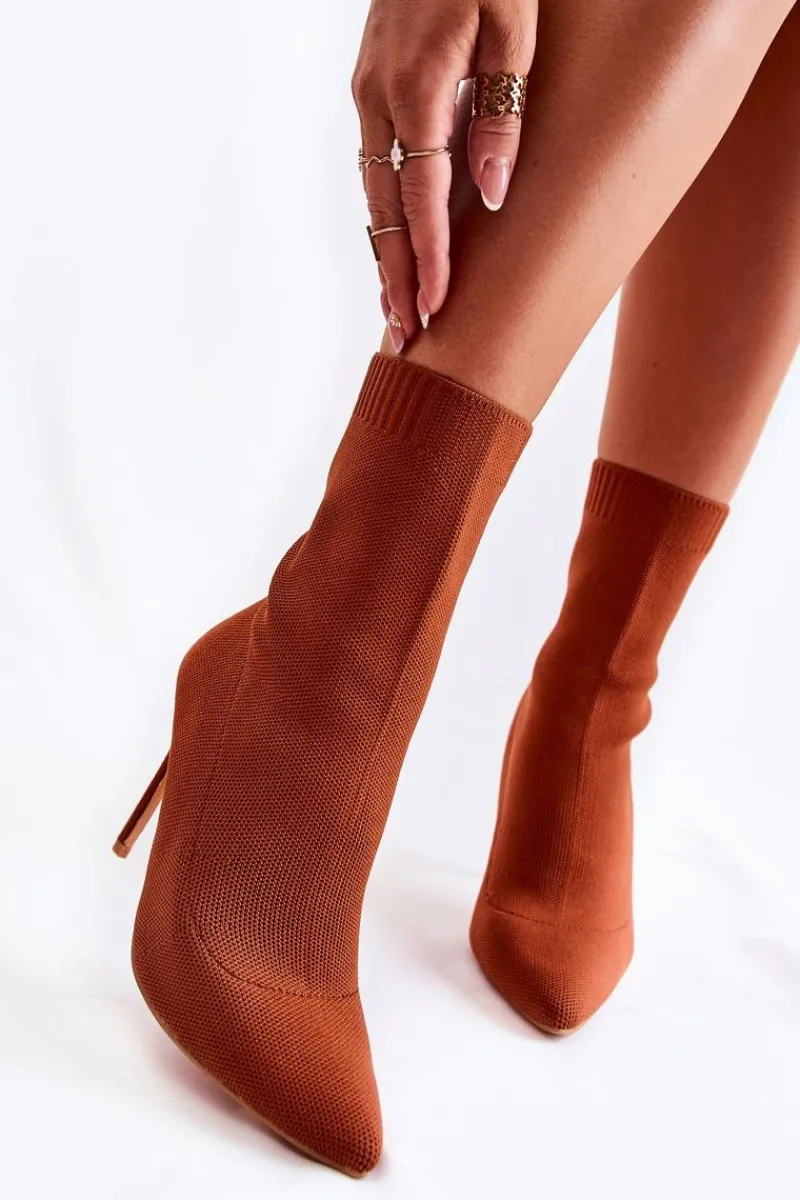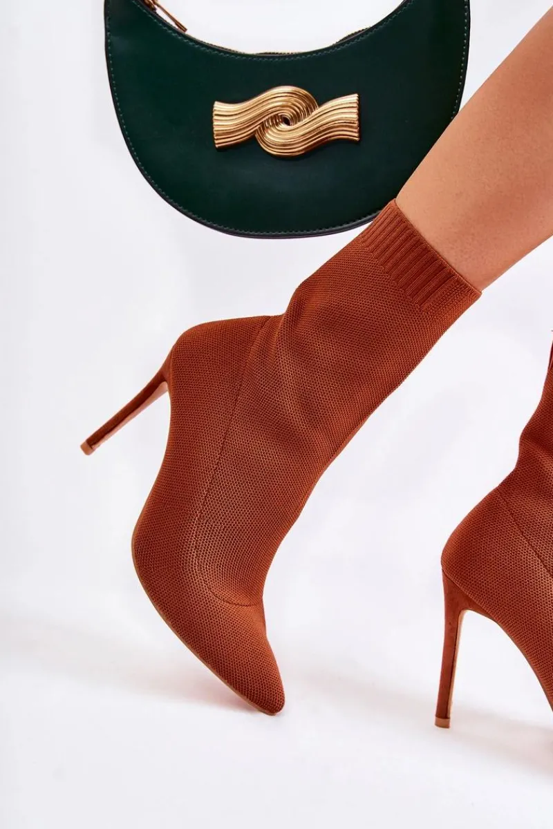 Botki Wiosenne|Botki Na Obcasie>Boto Damskie Wysokie Botki Ze Skarpetą Na Szpilce Camel Luisell Brązowy