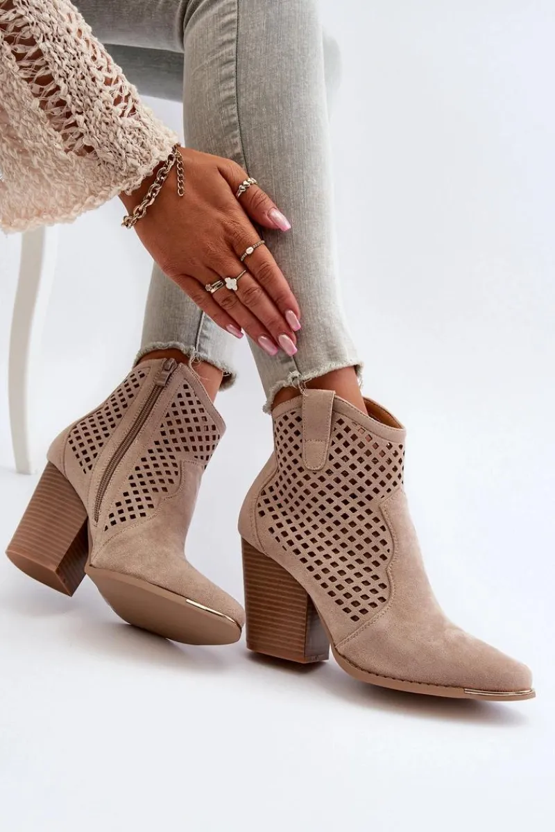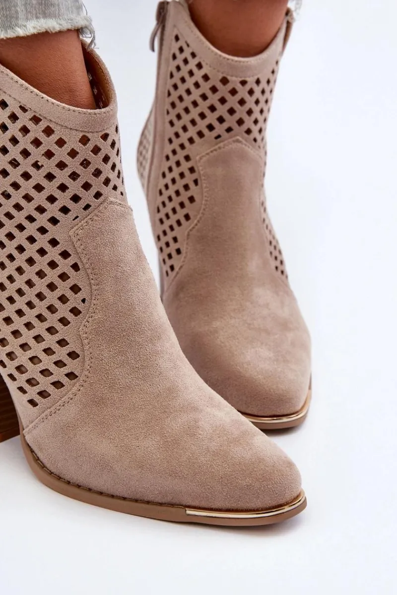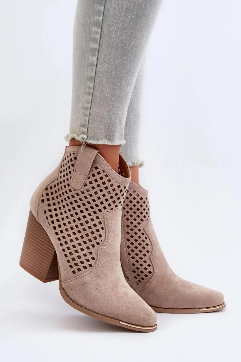 Botki damskie wykonane z eko zamszu. Zapinane na zamek. Noski w kształcie migdała dodają delikatności i subtelności całej stylizacji. Wkładka ze skóry naturalnej zapewnia komfort noszenia przez cały dzień, dbając jednocześnie o odpowiednią wentylację stóp. Te botki doskonale sprawdzą się w codziennych oraz bardziej formalnych zestawach, dodając im szyku i elegancji. Przy wyborze rozmiaru prosimy sugerować się tabelą rozmiarów.