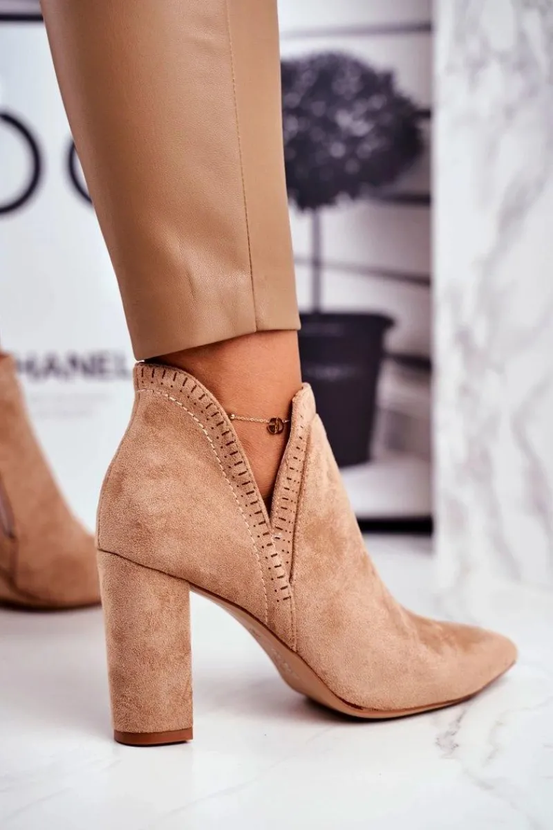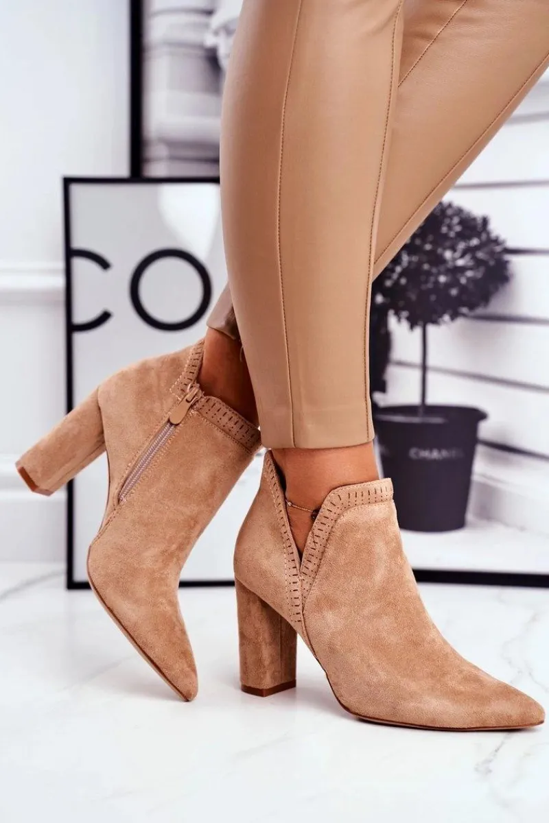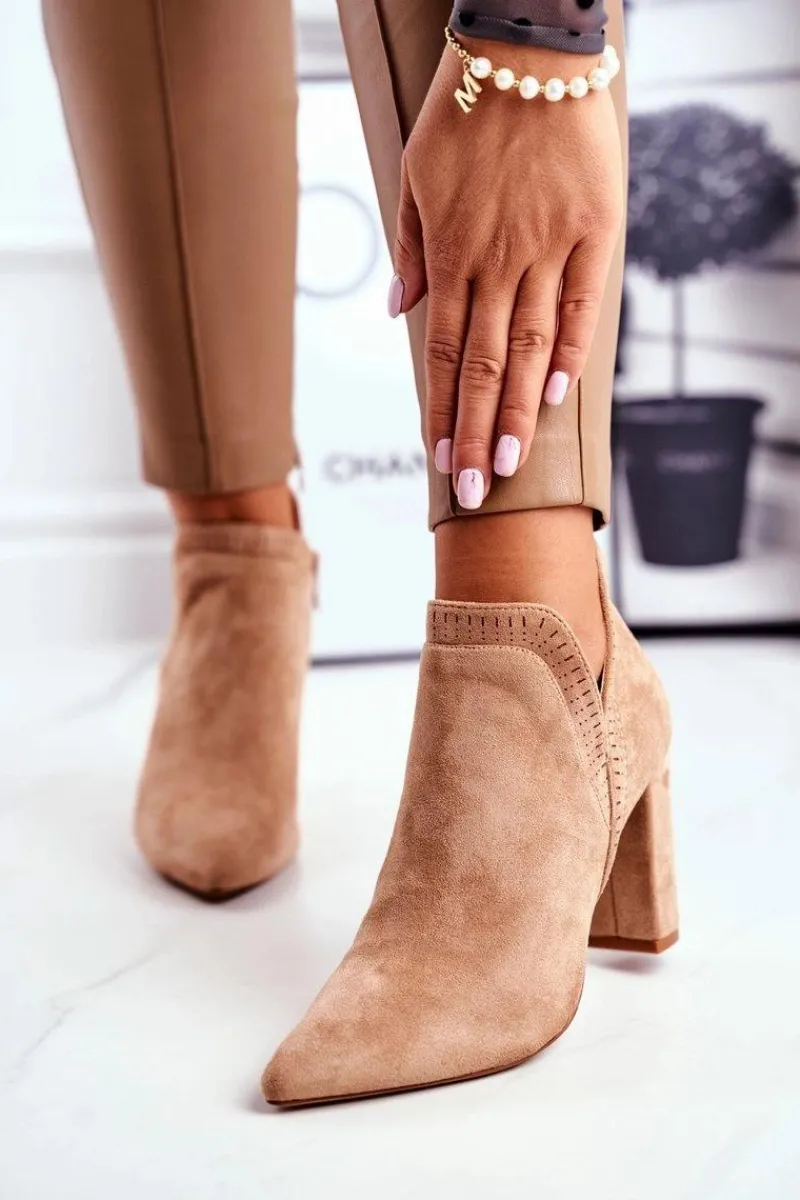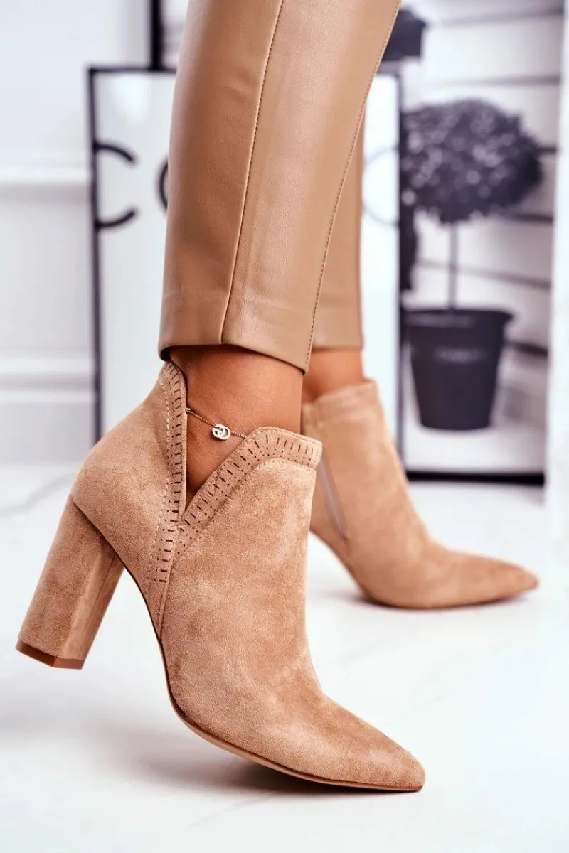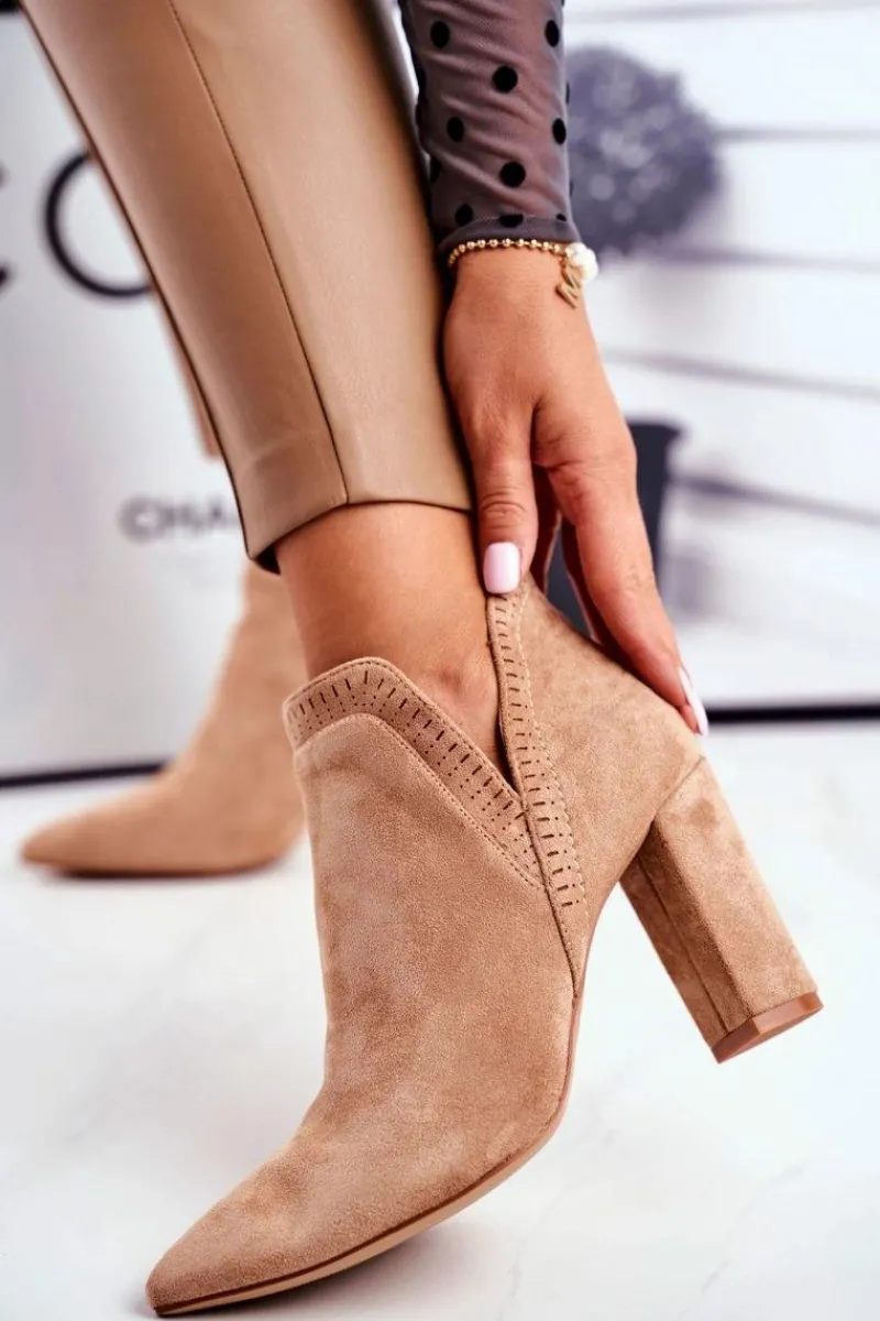 Botki Wiosenne|Botki Na Słupku>Boto Damskie Botki Na Słupku Wycięte Khaki Bimmer