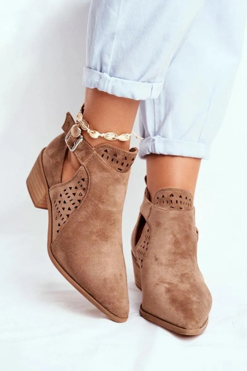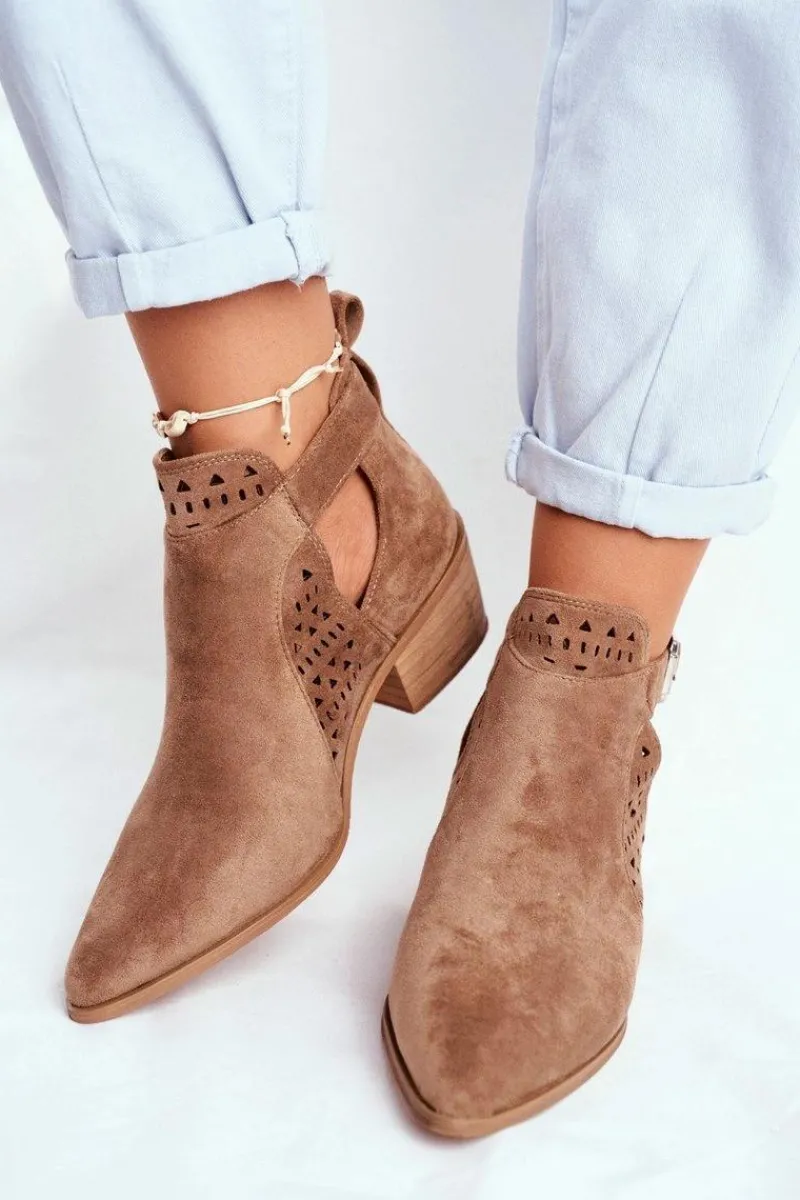 Piękne botki z noskiem w szpic wykonane z eko zamszu. Przy wyborze rozmiaru prosimy sugerować się tabelą rozmiarów.