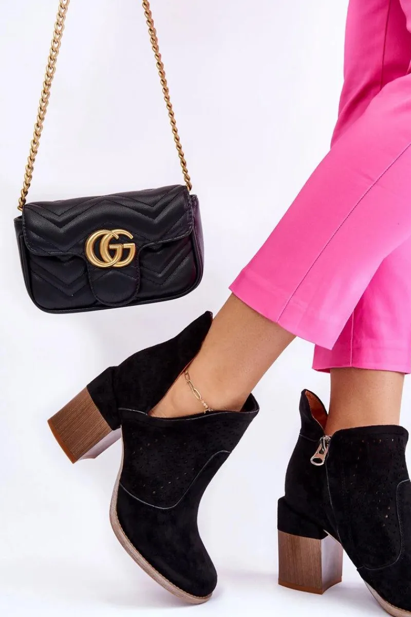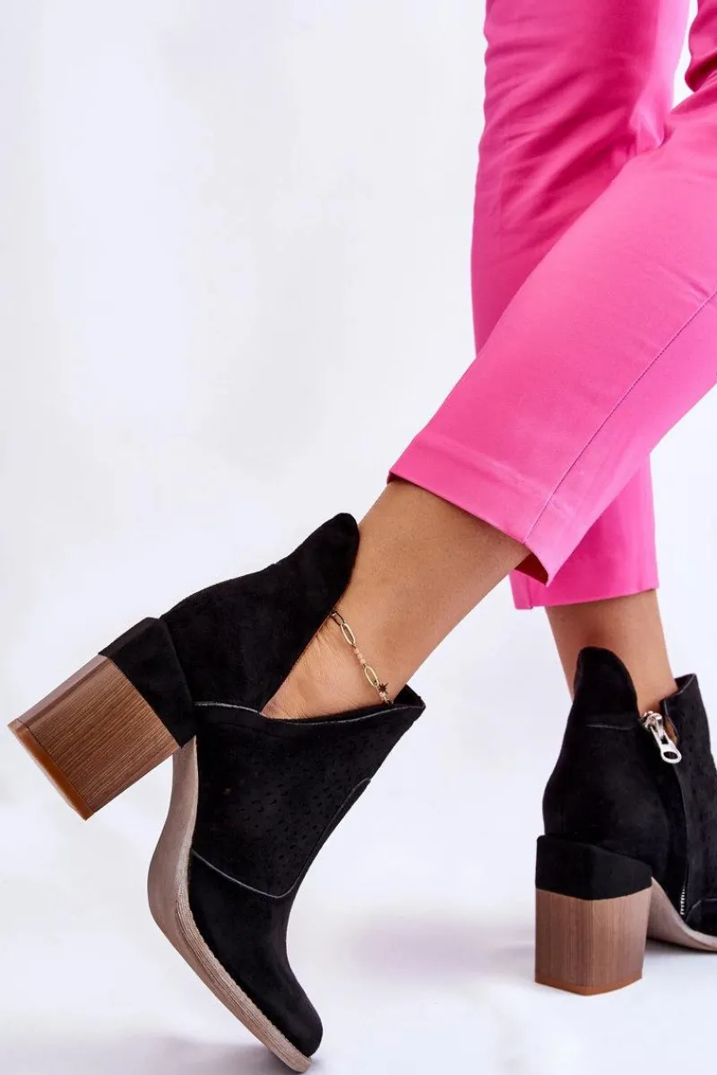 Botki Wiosenne|Botki Na Słupku>Boto Zamszowe Botki Z Wycięciem Czarne Layne