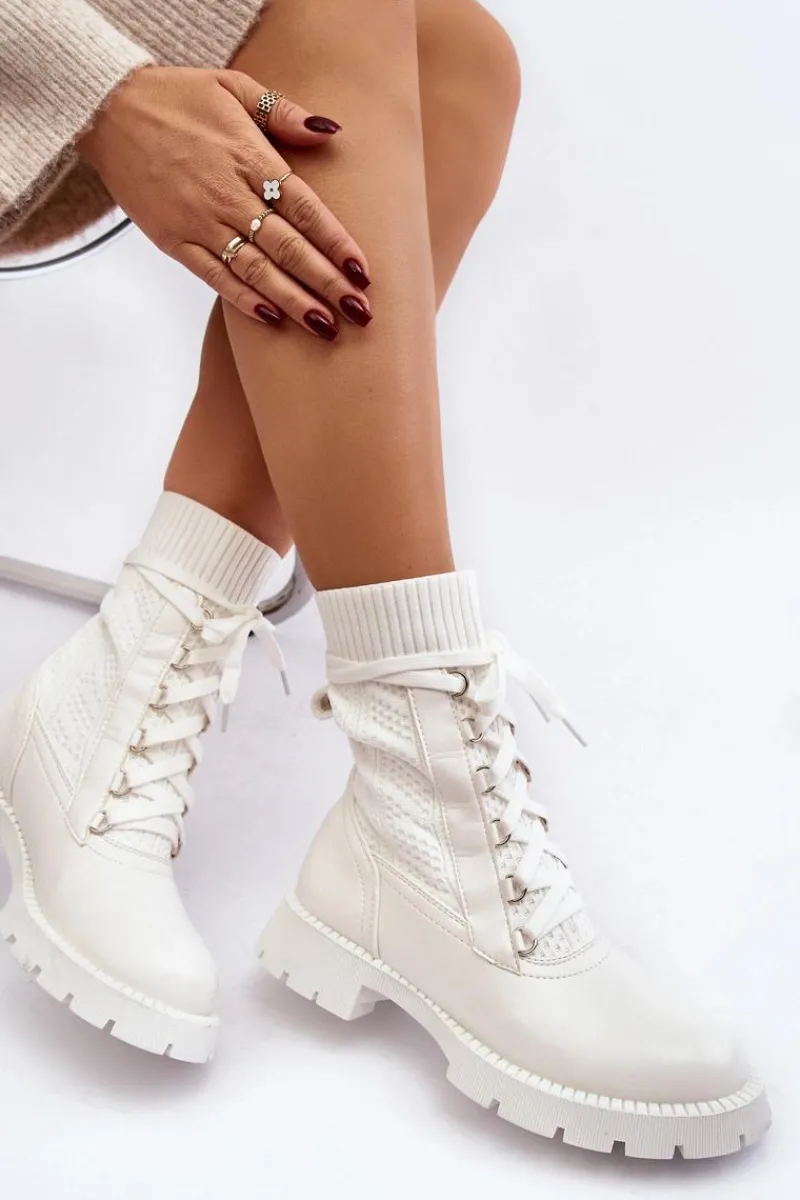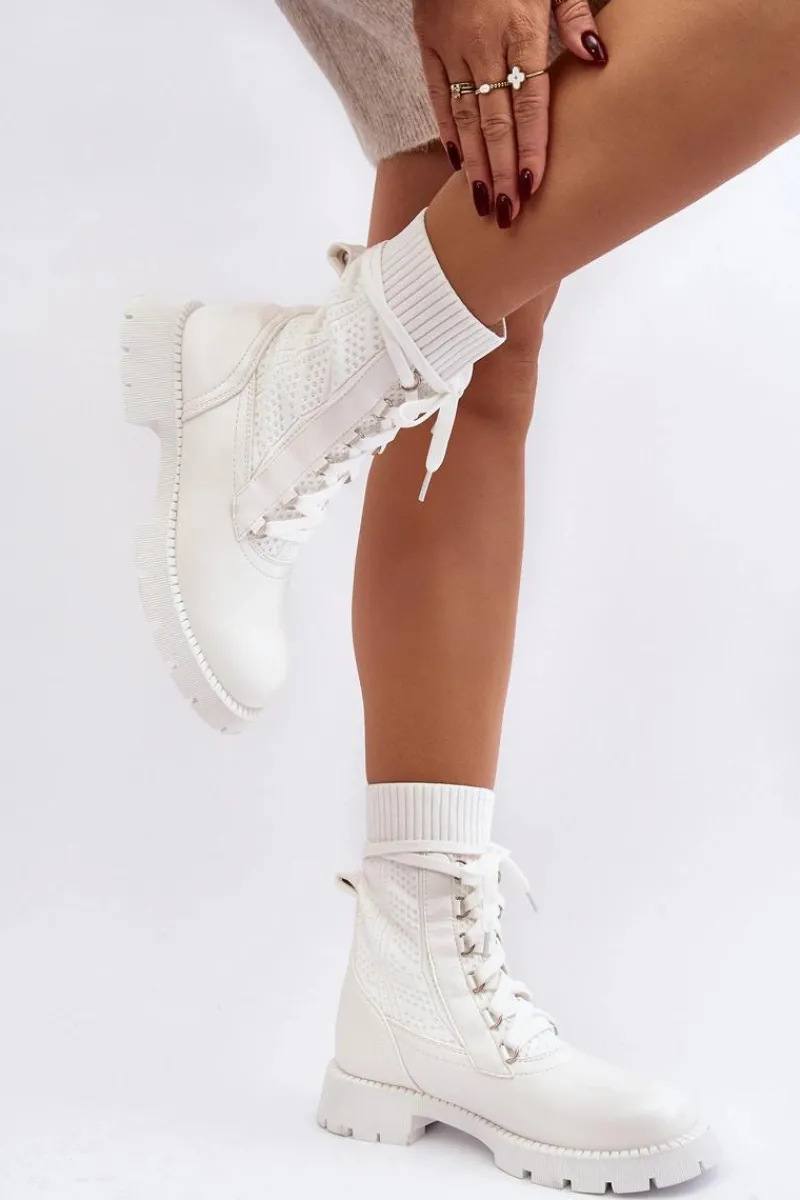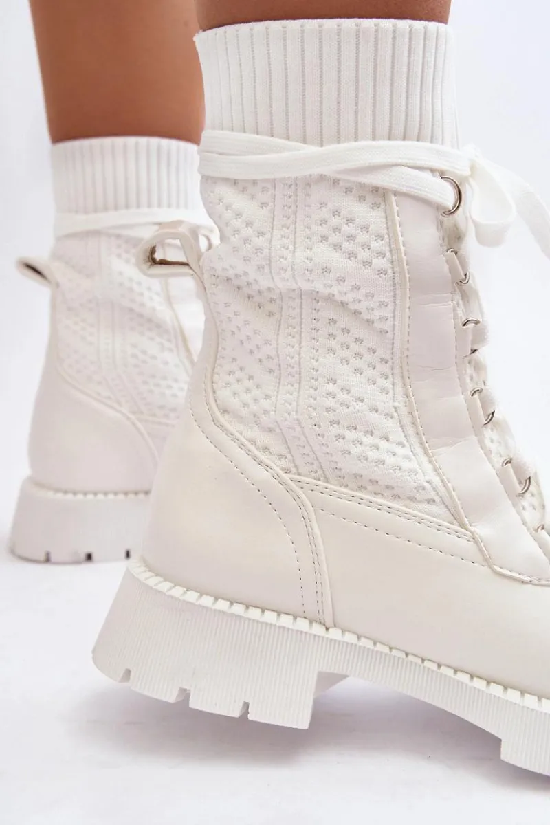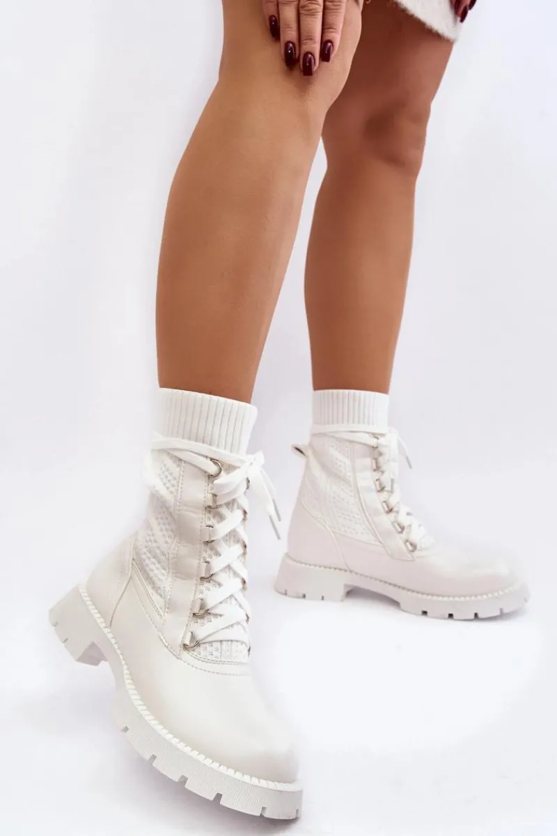 Modne botki damskie zostały wykonane z połączenia eko skóry I materiału tekstylnego. Model wsuwany oraz dodatkowo posiada sznurowanie. Osadzone na platformie oraz płaskim obcasie. Miękka, eko skórzana wkładka zapewni komfort podczas użytkowania. Noski zaokrąglone. Cholewka za kostkę. Koniecznie powinnaś je mieć! Przy wyborze rozmiaru prosimy sugerować się tabelą rozmiarów.