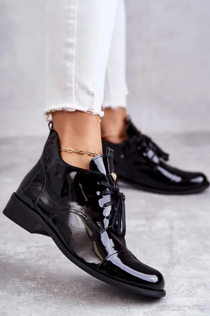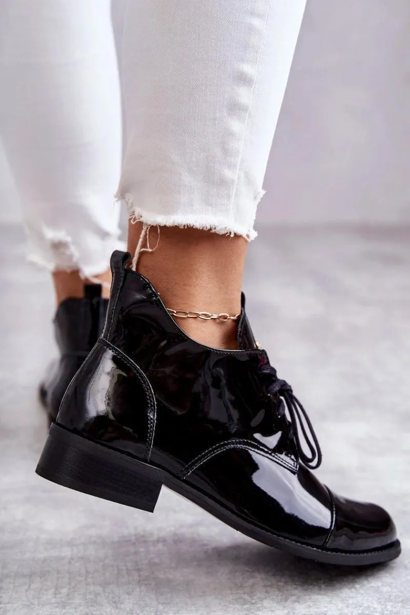Damskie botki zostały wykonane z naturalnych skór najwyższej jakości z dbałością o szczegóły. Model posiada klasyczne sznurowanie oraz suwak z boku cholewki. Dodatkowo zapiętek jest usztywniany. Płaski obcas w tych botkach zapewnia stabilność podczas użytkowania. Nie są ocieplane. Miękka, wykonana z naturalnej skóry wkładka zapewni komfort podczas użytkowania. Przy wyborze rozmiaru prosimy sugerować się tabelą rozmiarów.