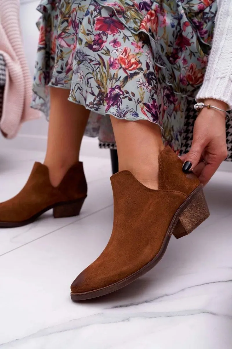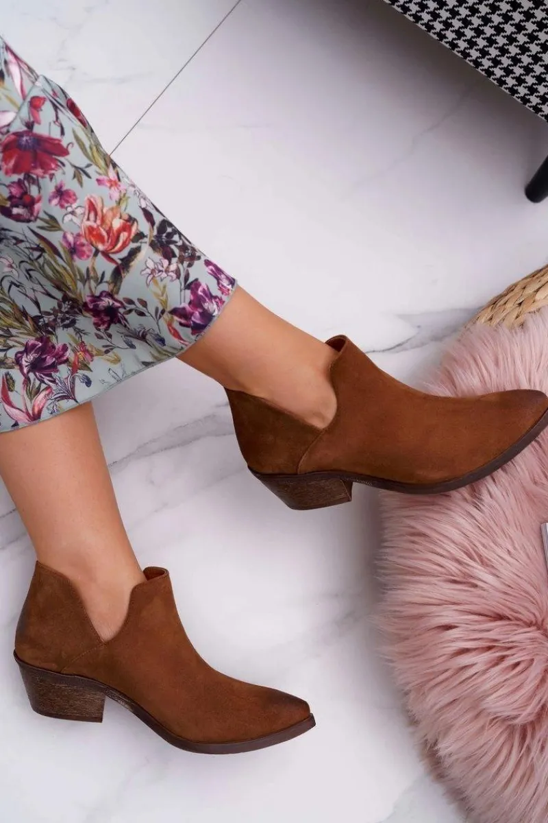 Botki to nie tylko buty na chłodne dni. Świetnie sprawdzą się również podczas tworzenia wiosennych stylizacjach. Botki posiadają delikatne wycięcia na wysokości kostek oraz płaski obcas, który stał się bardzo modny w tym sezonie. Botki w całości wykonane ze skóry zamszowej. Produkt Polski, co gwarantuje nam komfort oraz wysoką jakość wykonania. Idealne do zwiewnych sukienek oraz jeansowych spodni. Przy wyborze rozmiaru prosimy sugerować się tabelą rozmiarów.