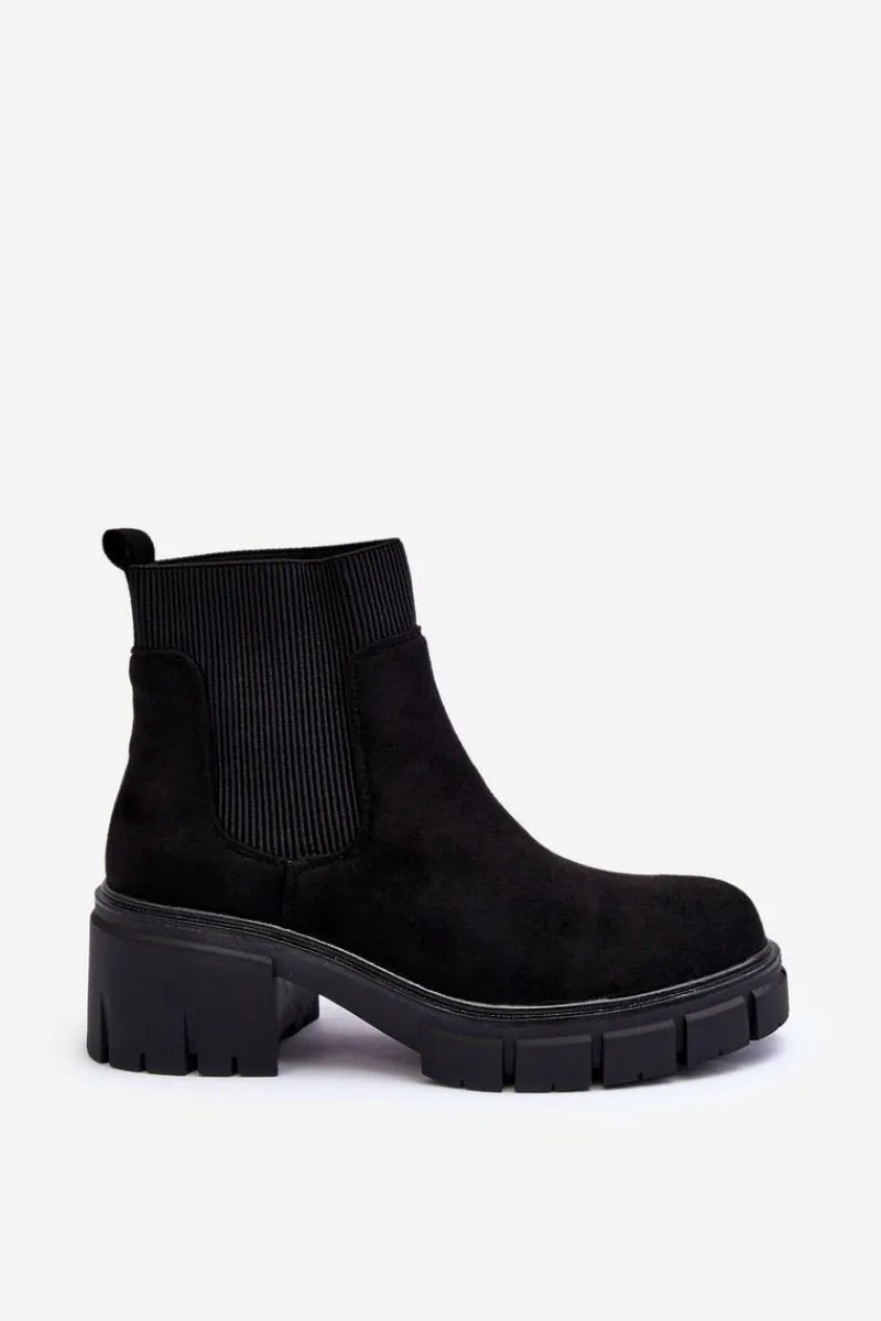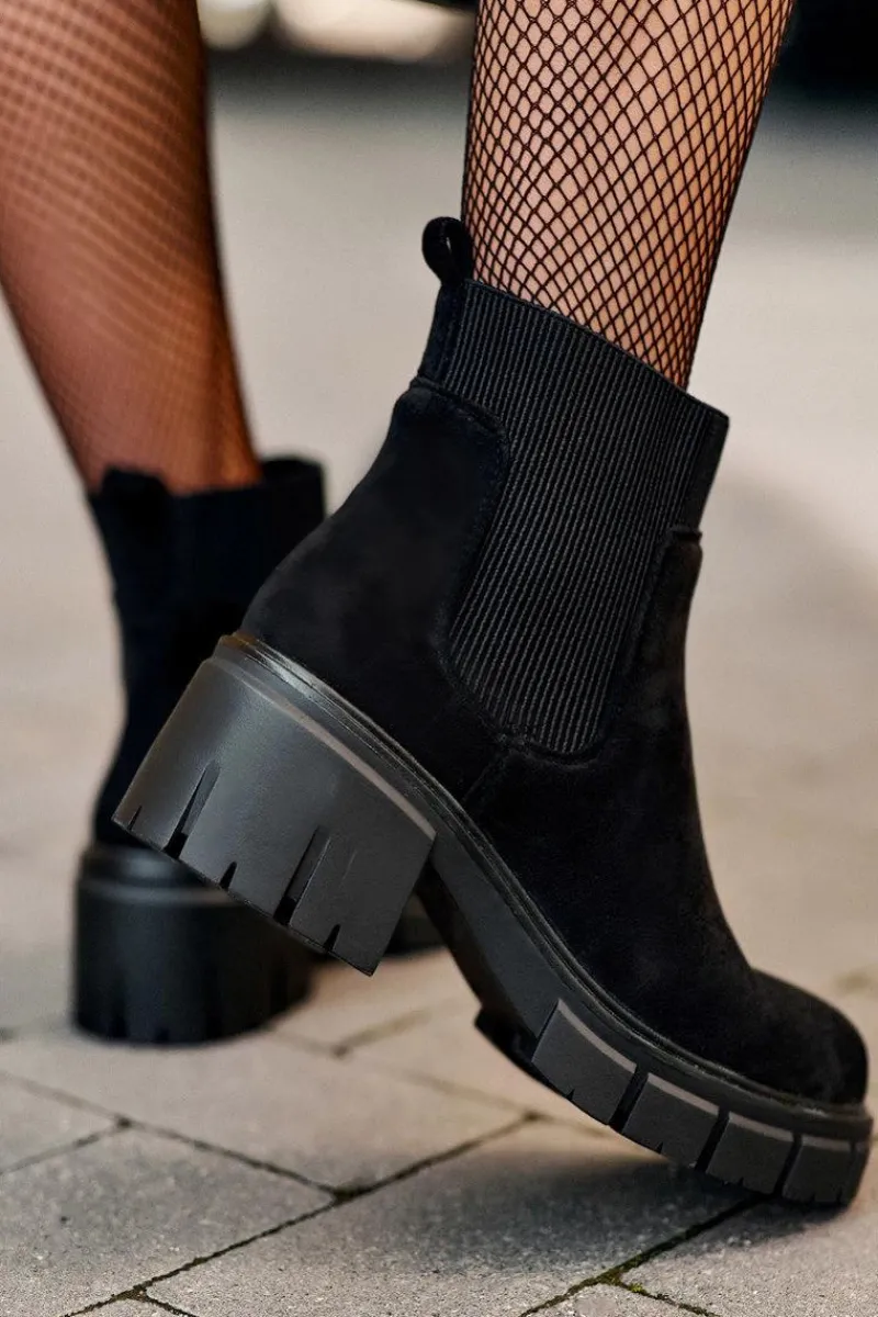 Damskie botki zostały wykonane z eko zamszu. Osadzone na masywnym obcasie oraz platformie. Model wsuwany, noski zaokrąglone. Dodatkowo zapiętek jest usztywniony. Nie czekaj aż znikną i kup już dziś! Przy wyborze rozmiaru prosimy sugerować się tabelą rozmiarów.