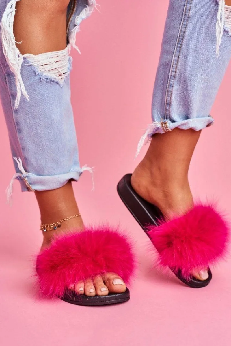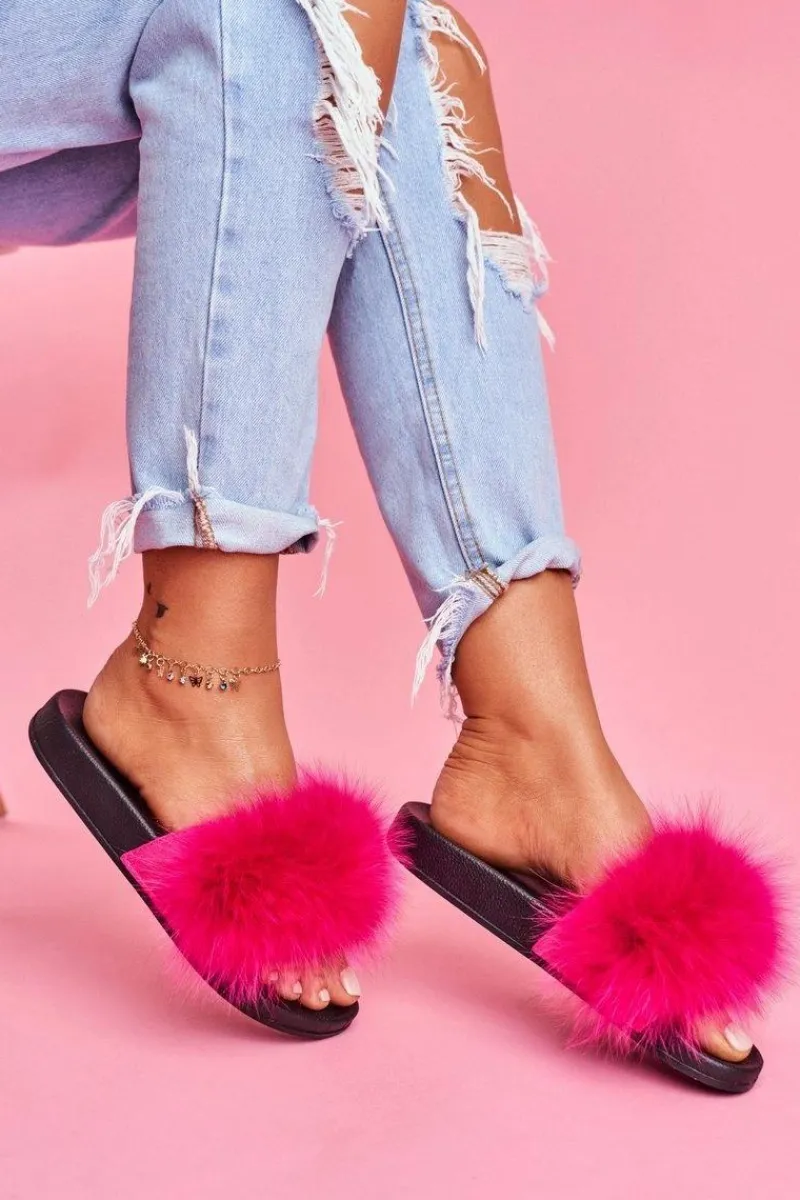 Klapki damskie z naturalnym futerkiem. Podeszwa wykonana jest z gumowego, lekkiego tworzywa. Delikatnie profilowana wkładka zadba o Twój komfort.