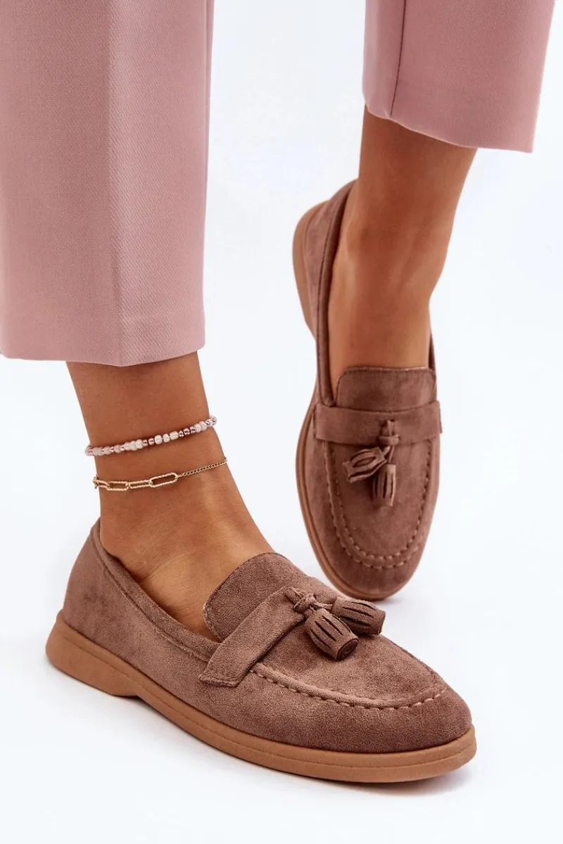 Mokasyny to absolutny hit tego sezonu! Wykonane z eko zamszu, prezentują się nie tylko stylowo, ale także są przyjemne w noszeniu. Zaokrąglony nosek dodaje im uroku, a miękka wkładka z eko skóry zapewnia niezrównany komfort, nawet podczas długiego noszenia. Osadzone na płaskim obcasie, będą doskonałym uzupełnieniem wielu różnorodnych stylizacji! Przy wyborze rozmiaru prosimy sugerować się tabelą rozmiarów.