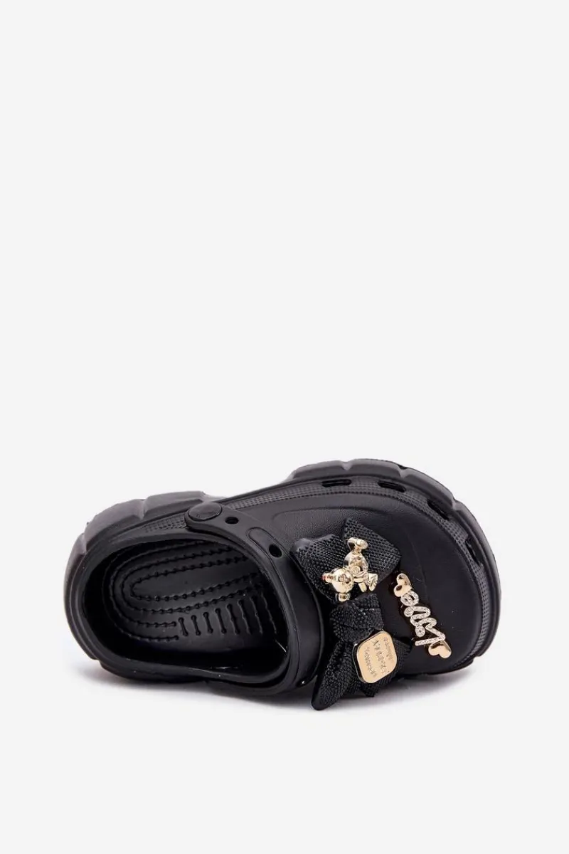 Klapki dla dziewczynek wykonane z piankowego tworzywa to urocza i wygodna opcja na ciepłe dni. Zakryte, szerokie noski zapewniają komfort, a kokardka i złote ozdoby nadają im wyjątkowego uroku. Idealne dla małych modnisi! Przy wyborze rozmiaru prosimy sugerować się tabelą rozmiarów.