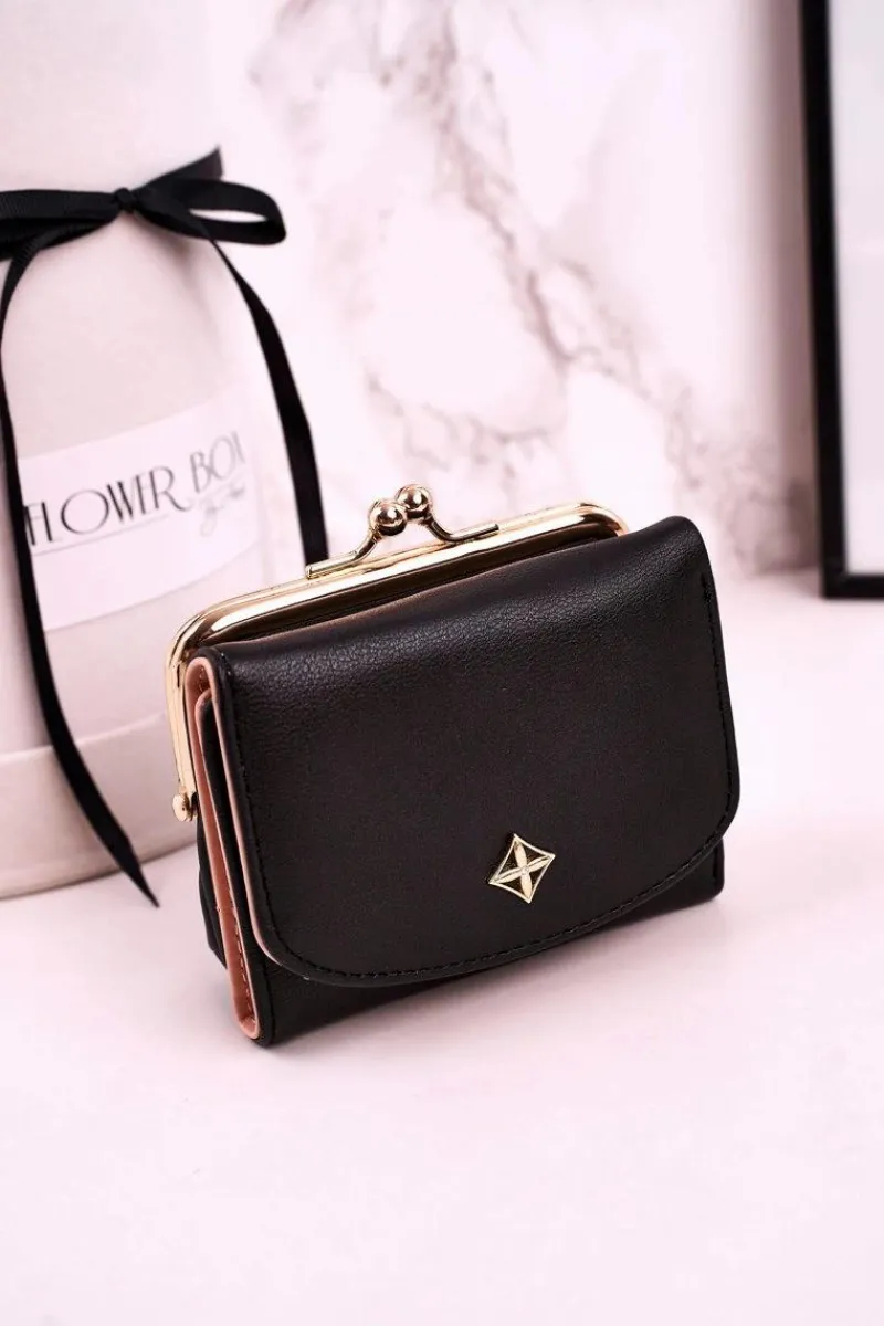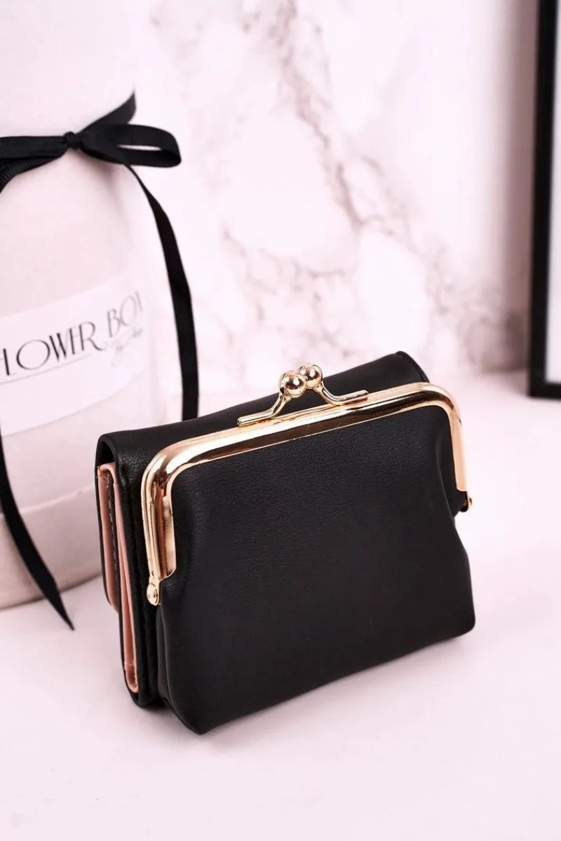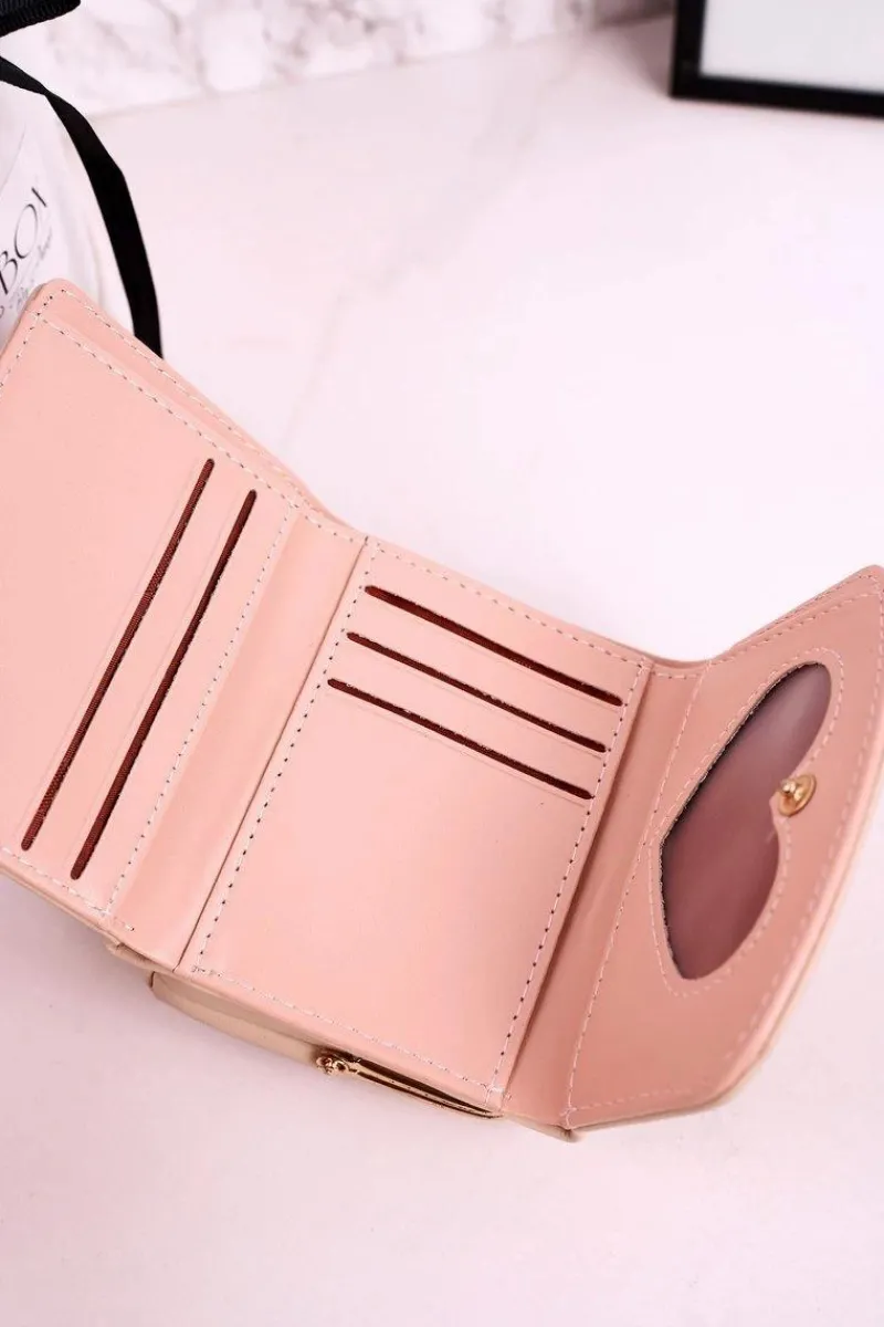 Mały portfel damski zapinany na bigiel. Portfel pomieści bilon, banknoty oraz karty płatnicze. Wykonany ze skóry ekologicznej.