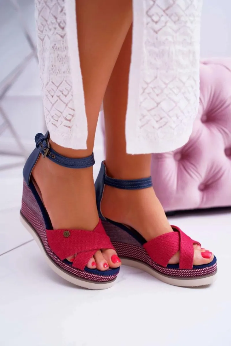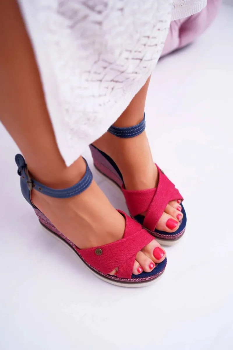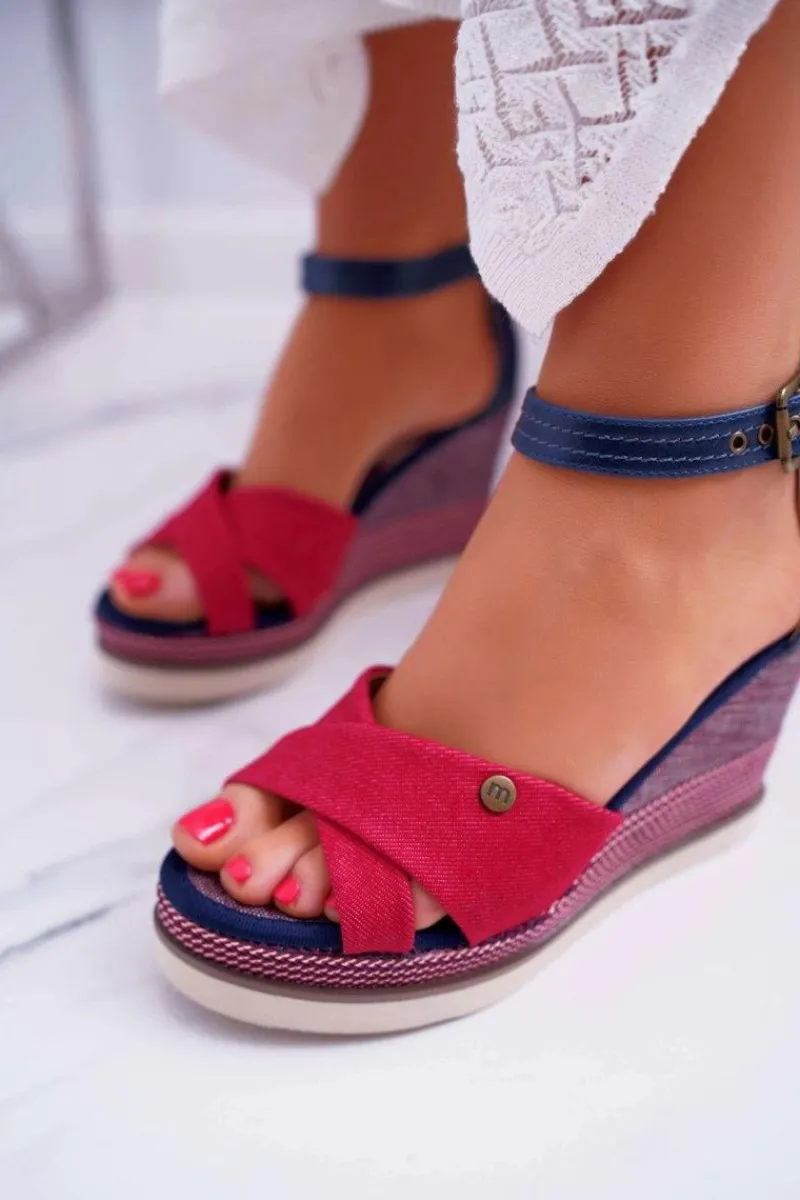 Boto Sandały Damskie Na Koturnie Jeans Czerwone DoThis!