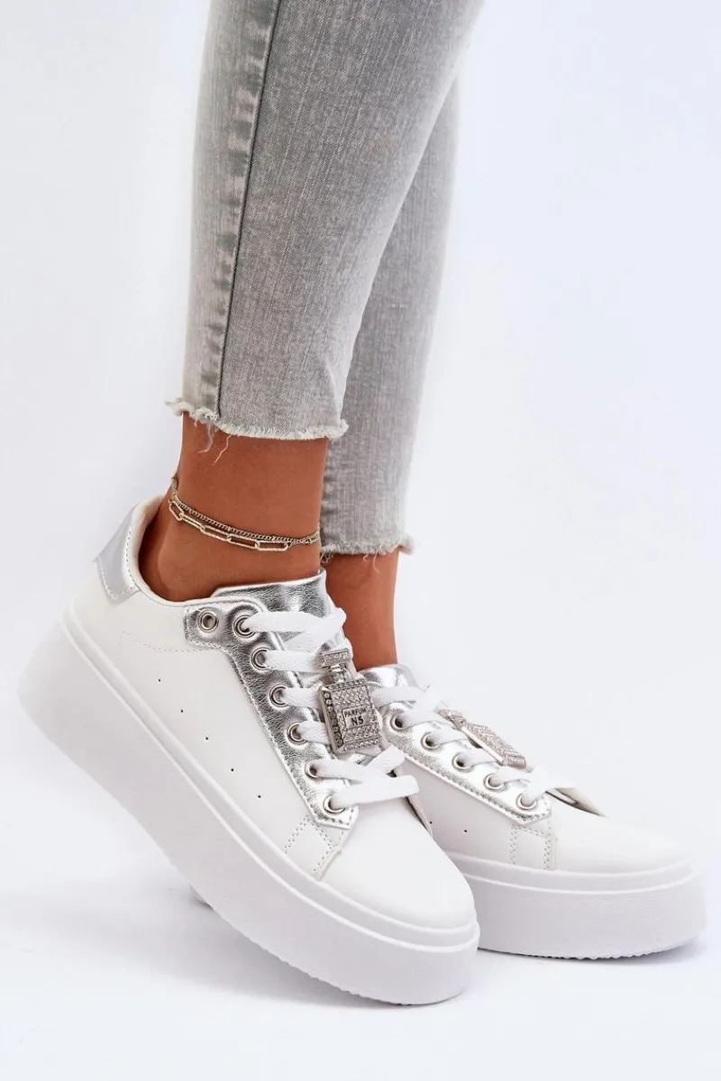 Damskie buty sportowe zostały wykonane z eko skóry. Osadzone na platformie. Model ten jest klasycznie sznurowany. Świetnie sprawdzą się jako obuwie na co dzień, do pracy czy szkoły. Wkładka z pianki zadba o Twój komfort. Na sznurówkach ozdoba w postaci perfum. Ten model powinien znaleźć się w Twojej szafie! Przy wyborze rozmiaru prosimy kierować się tabelą rozmiarów.