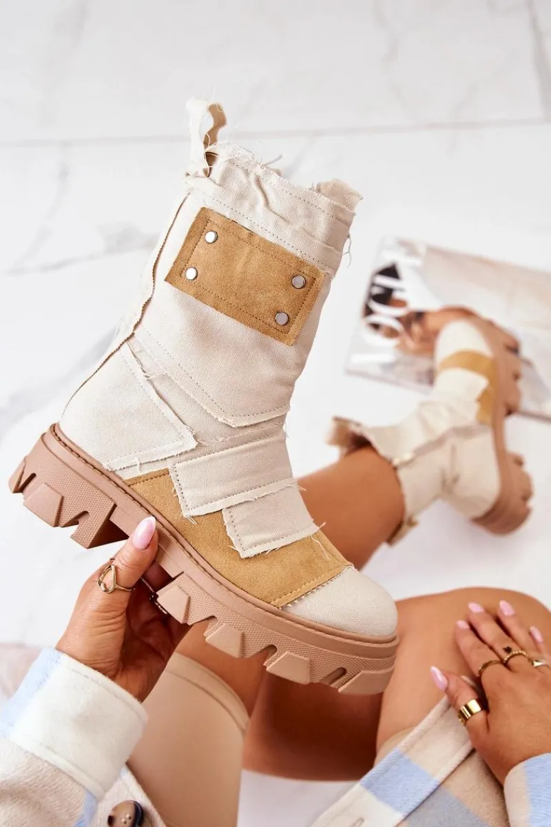 Wysokie botki – workery zostały wykonane z materiału tekstylnego. Masywna podeszwa z szerokim obcasem zapewnia stabilność na każdym kroku. Zapinane na suwak. Posiadają eko skórzaną wkładkę. Cholewka od środka jest wykonana z miękkiej tkaniny. Ciekawy wzór sprawi, że będziesz wyróżniać się spośród tłumu! Ten model to hit! Przy wyborze rozmiaru prosimy sugerować się tabelą rozmiarów.