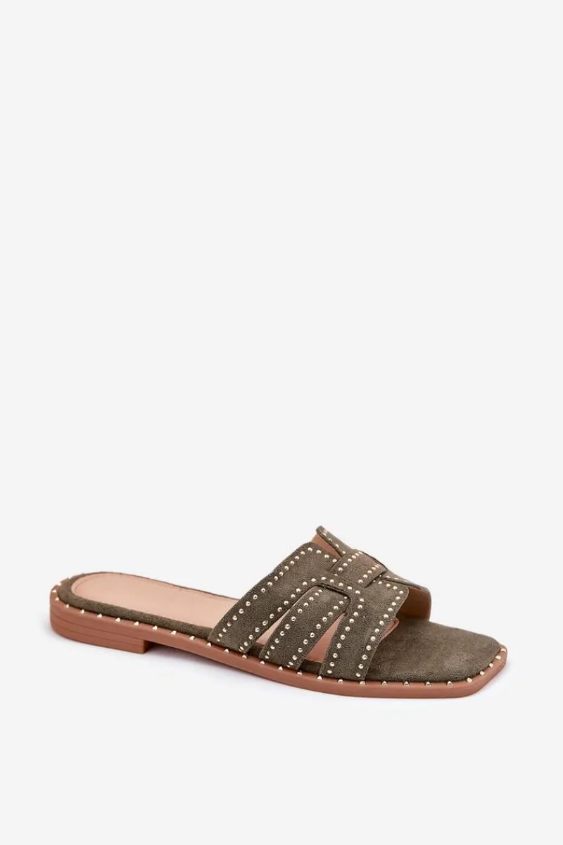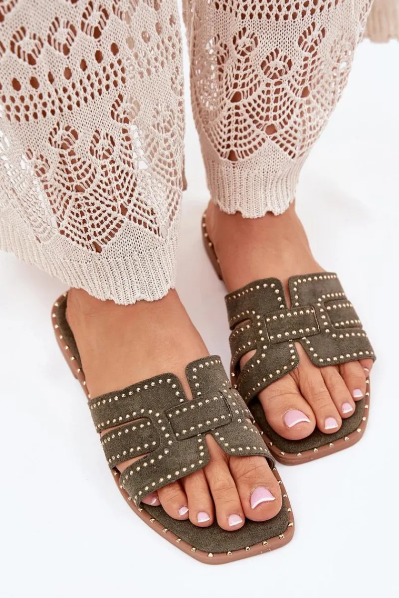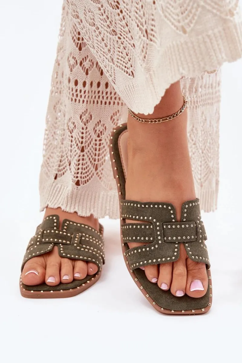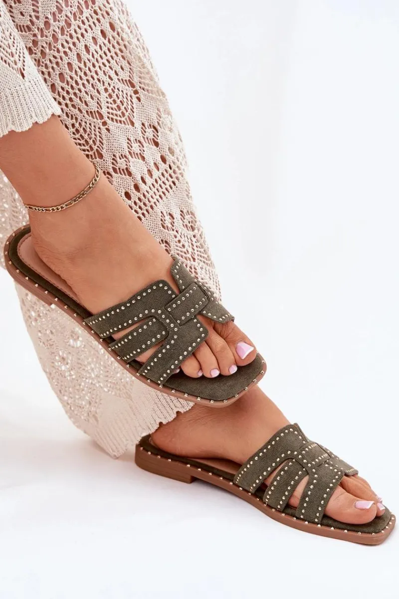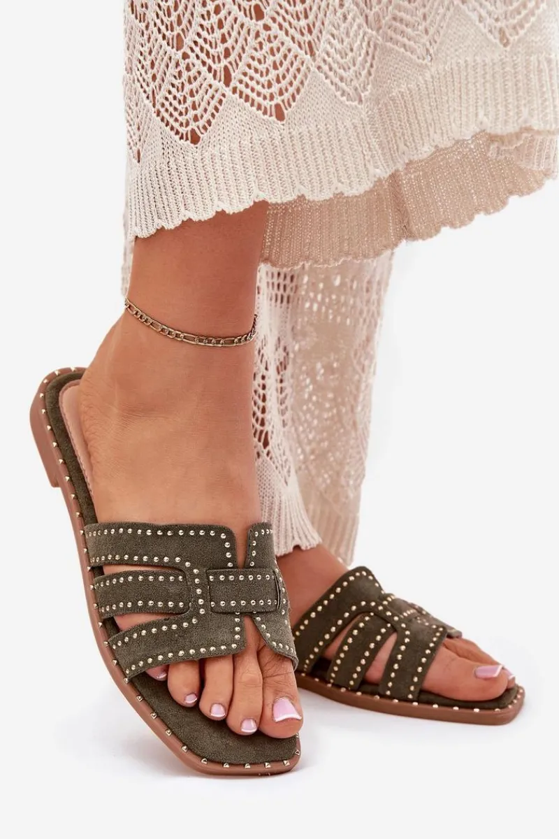 Zdobione klapki damskie wykonane z eko zamszu to elegancka i wygodna propozycja na ciepłe dni. Osadzone na płaskim obcasie, zapewniają komfort przez cały dzień. Subtelne zdobienia przyciągają wzrok, dodając butom wyjątkowego charakteru. Idealne do codziennych stylizacji, łączą funkcjonalność z modnym wyglądem. Przy wyborze rozmiaru prosimy sugerować się tabelą rozmiarów.