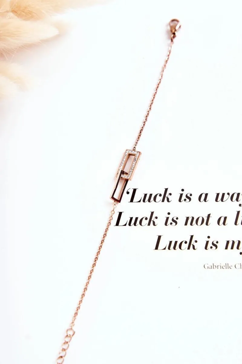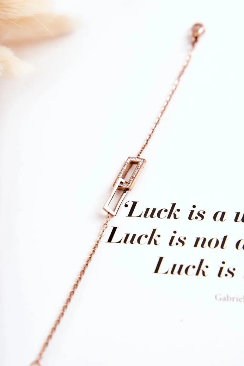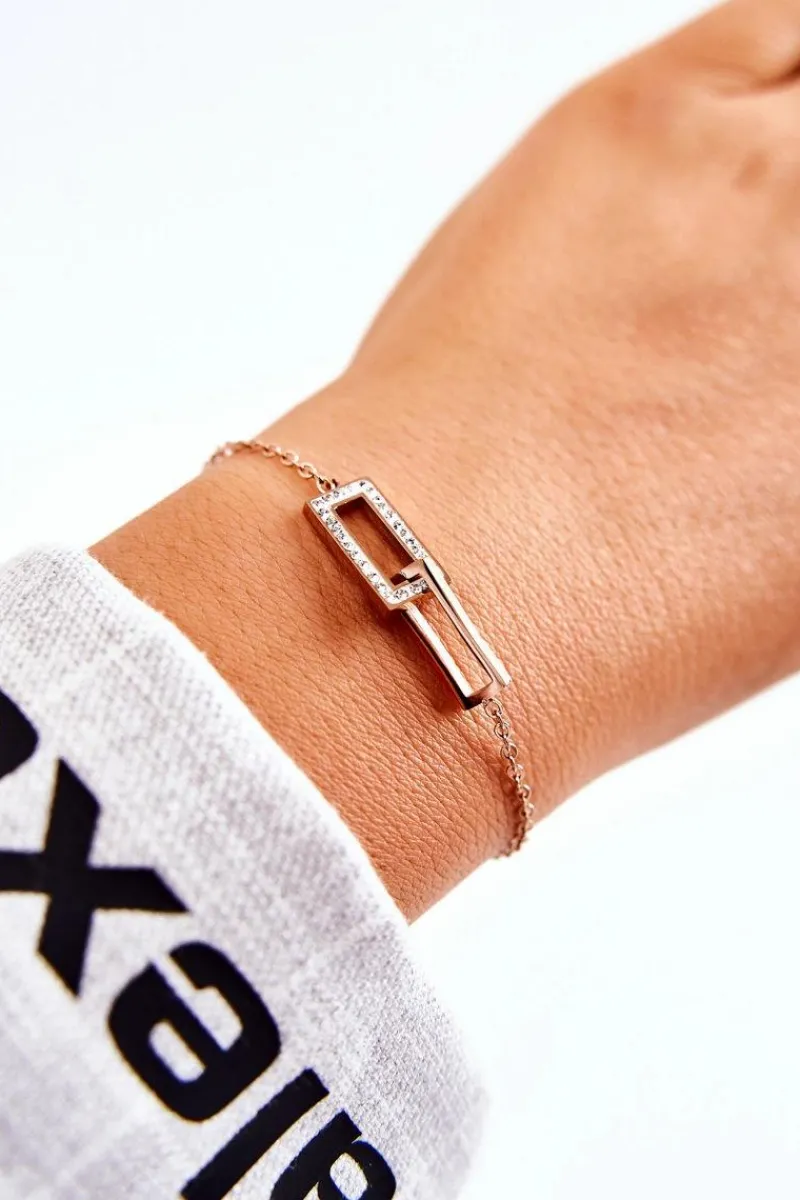 Damska bransoletka na cienkim łańcuszku typu celebrytka. Została wykonana ze stali nierdzewnej. Posiada możliwość regulacji długości. Na środku bransoletki znajduje się ozdoba w postaci dwóch prostokątów, z czego jeden jest przyozdobiony cyrkoniami. Taki rodzaj biżuterii jest świetnym dodatkiem do stylizacji nie tylko tych codziennych, ale i tych bardziej eleganckich. Model ten posiada klasyczne zapięcie. Koniecznie sprawdź także pozostałe modele biżuterii dostępnej w naszej ofercie!