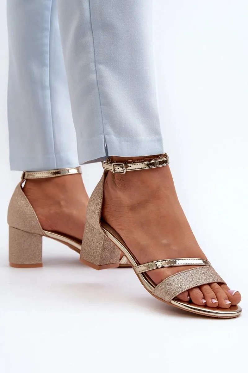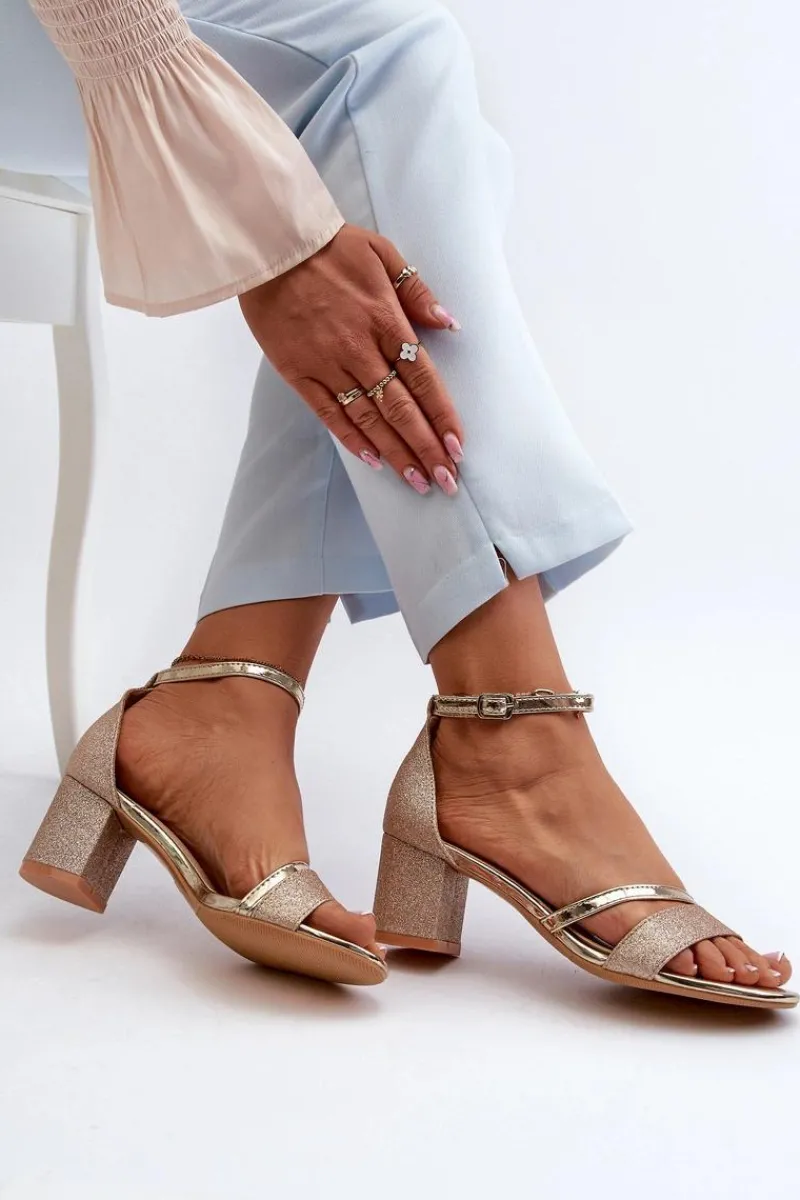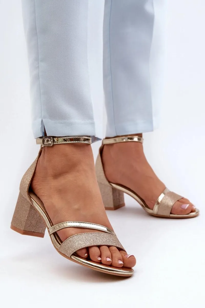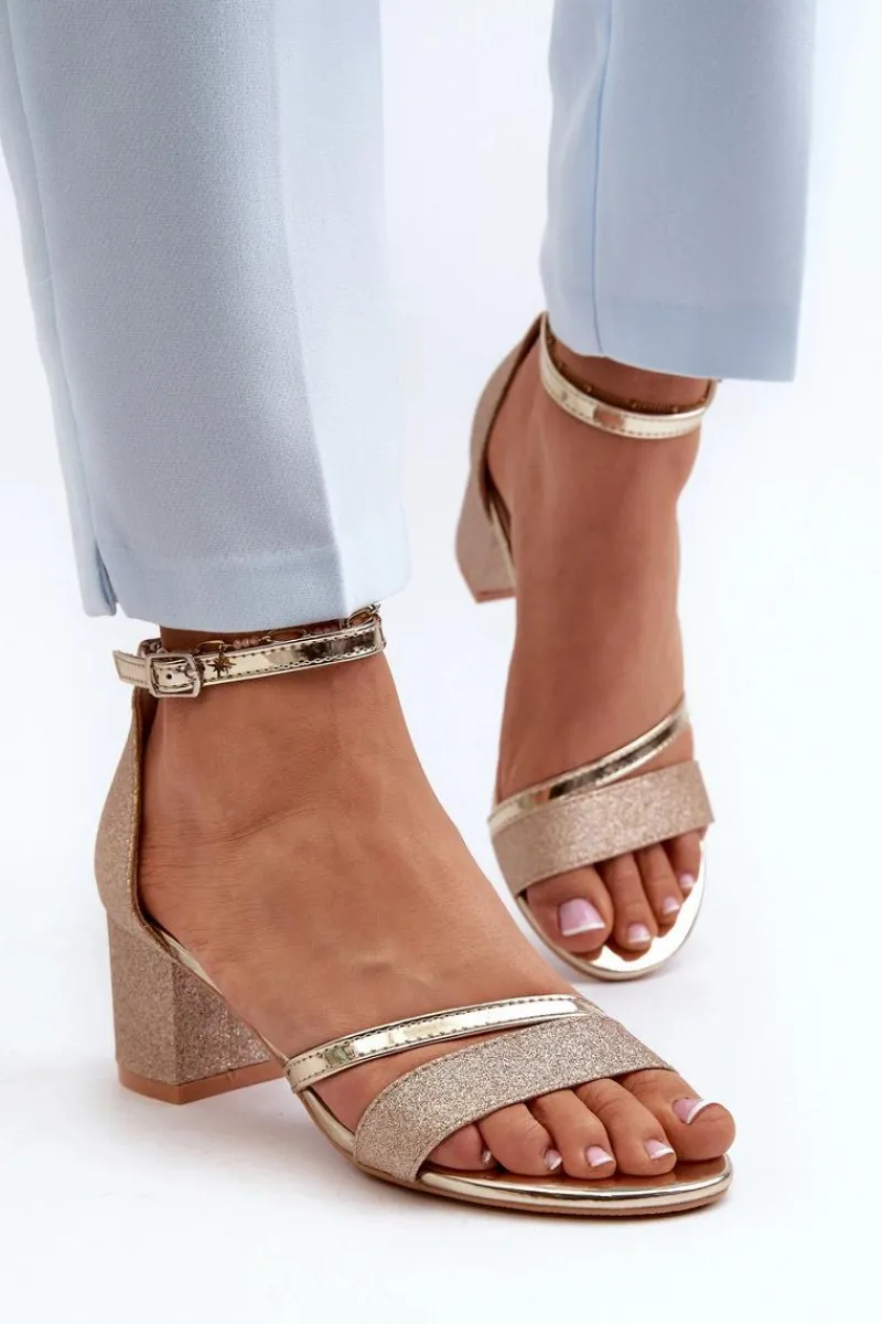 Brokatowe Sandały Damskie Na Niskim Słupku Złote Ploemis Damskie Sandały Na Słupku|Sandały Na Obcasie