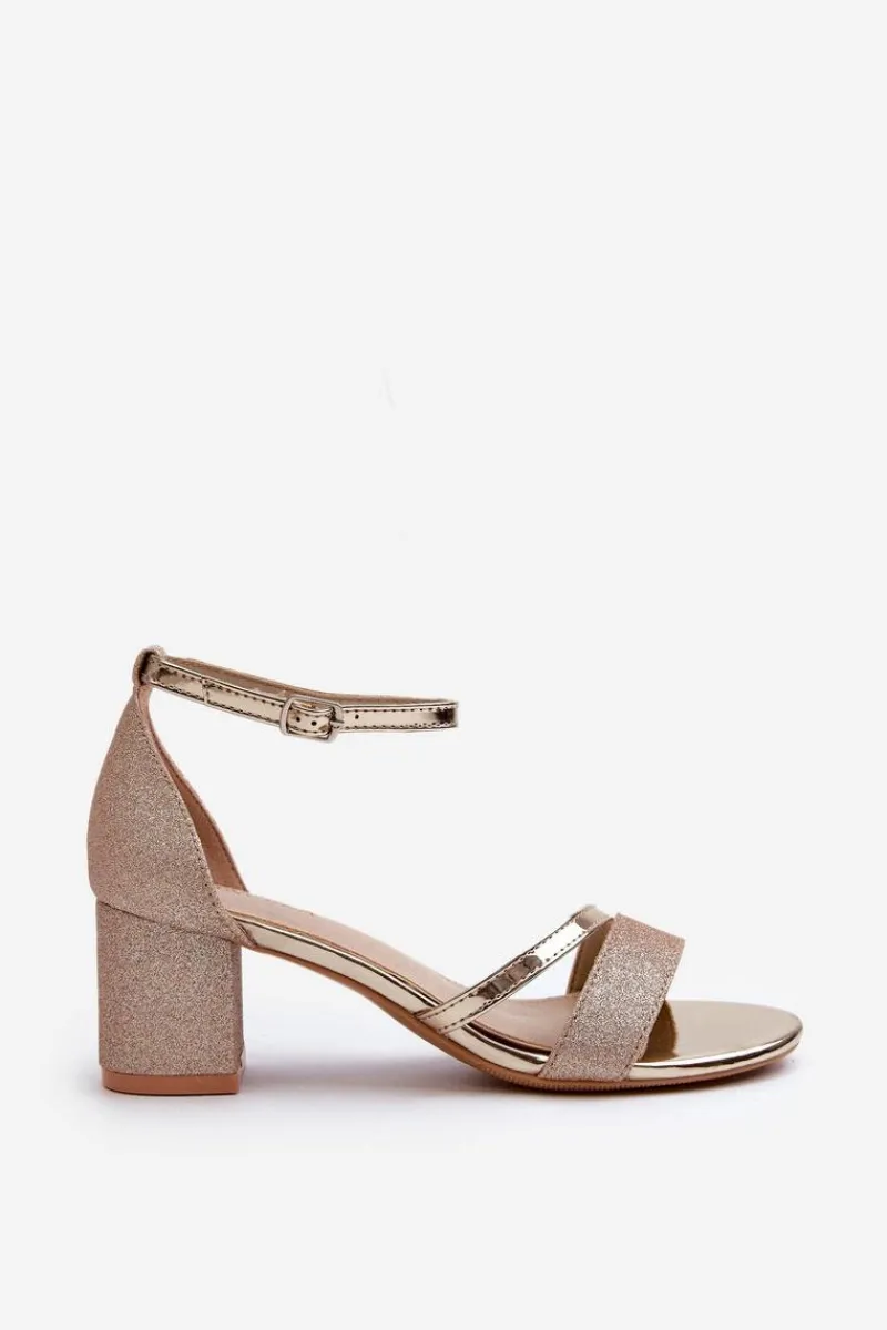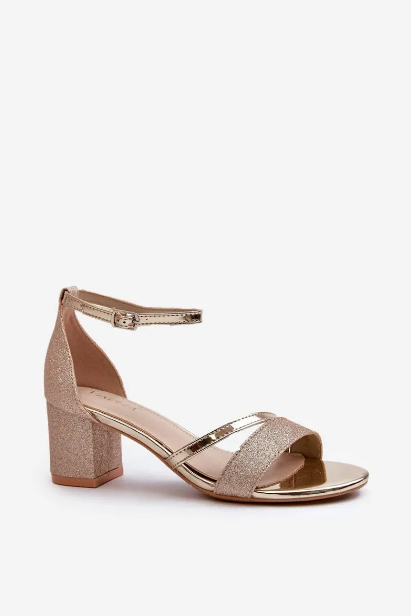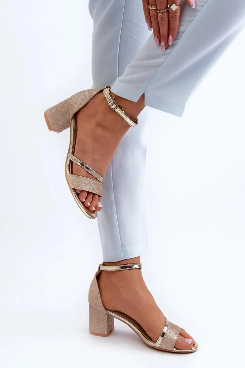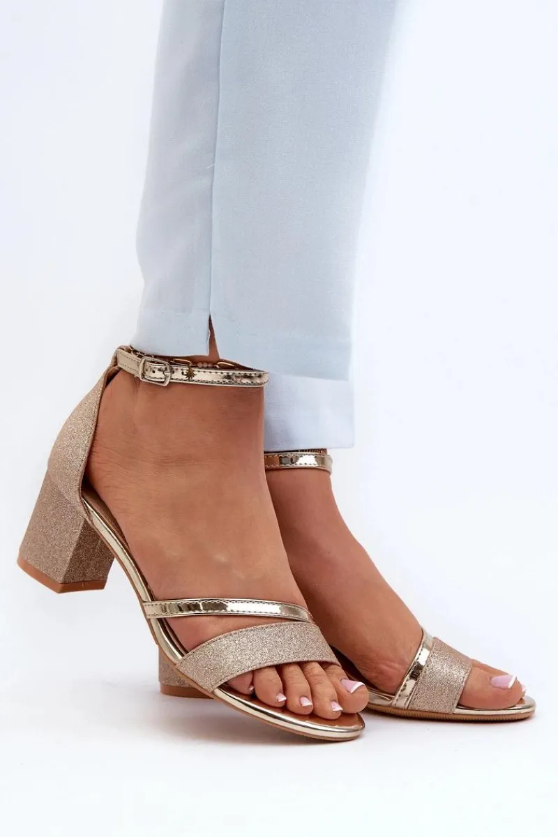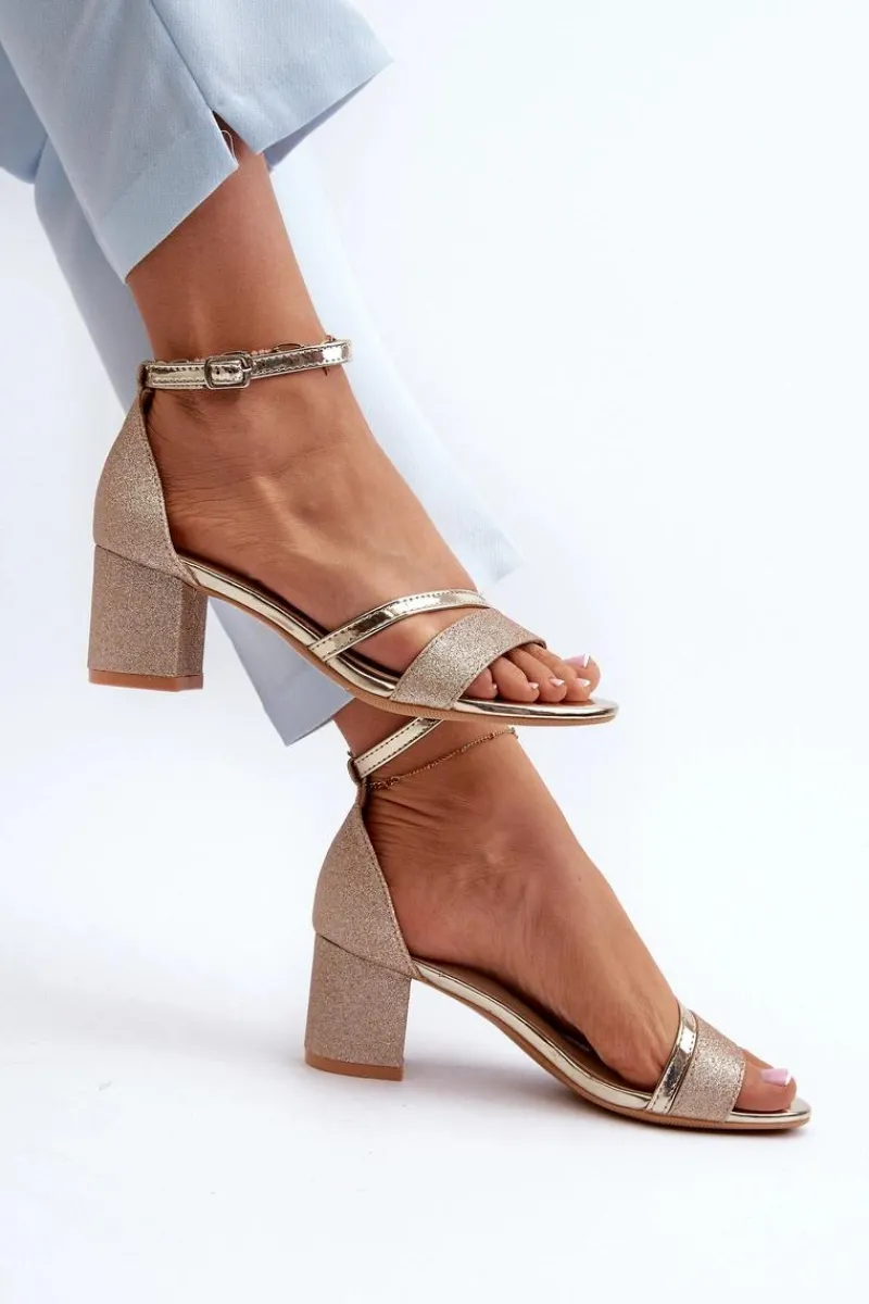 Brokatowe Sandały Damskie Na Niskim Słupku Złote Ploemis Damskie Sandały Na Słupku|Sandały Na Obcasie