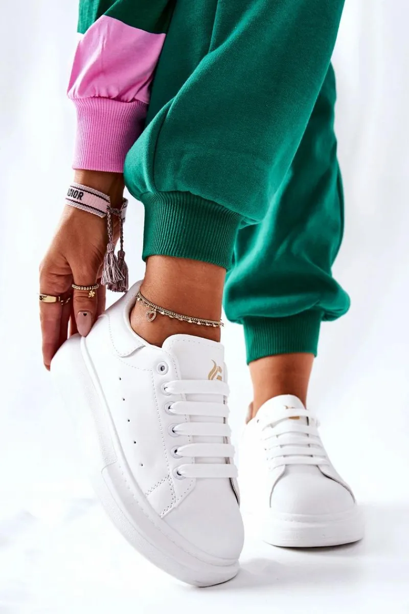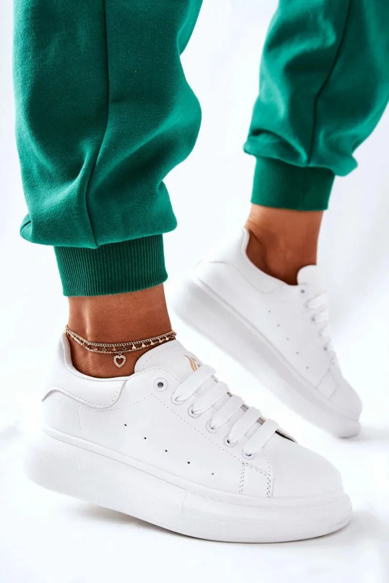 Modne buty sportowe zostały wykonane z eko skóry. Posiadają wysoką platformę. Na języku widnieje ozdobne logo. Sznurówki w kolorze obuwia. Sportowe buty to MUST HAVE każdej osoby ceniącej sobie komfort i wygodę. Nie czekaj aż znikną i kup je już dziś! Nie przegap takiej okazji! Przy wyborze rozmiaru prosimy kierować się tabelą rozmiarów.