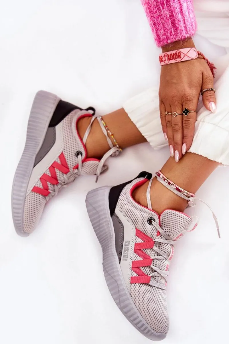 Modne buty sportowe marki Big Star zostały wykonane z połączenia przewiewnej, siateczkowej tkaniny oraz eko skóry. Lekkie, a jednocześnie wygodne obuwie sprawdzi się podczas codziennych aktywności. Buty posiadają miękką wkładkę z wytrzymałego i odpornego na ścieranie materiału. Osadzone na platformie z tworzywa sztucznego ze żłobieniami po bokach. Model klasycznie sznurowany. Dodatkowo nosek oraz zapiętek są usztywniane. Przy wyborze rozmiaru prosimy sugerować się tabelą rozmiarów.