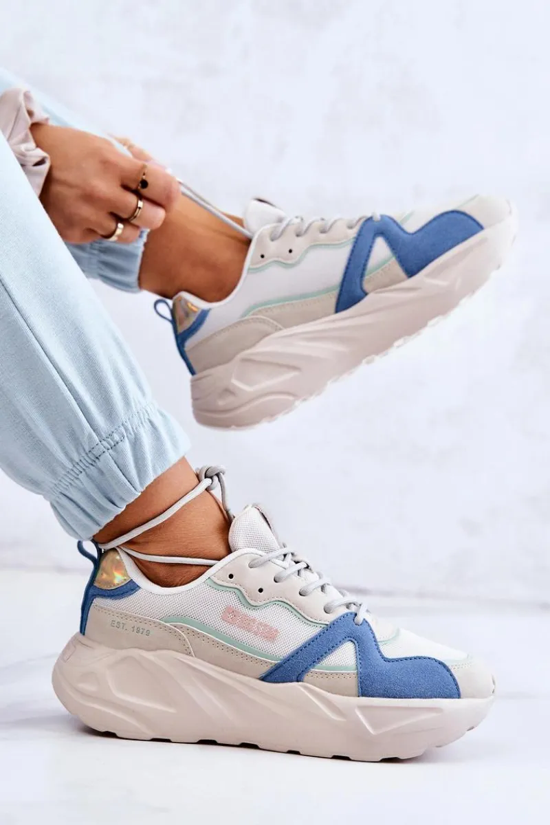 Lekkie buty sportowe marki Big Star. Posiadają klasyczne wiązanie na okrągłe sznurowadła. Wykonane z połączenia przewiewnej tkaniny, eko skóry i eko zamszu. Wkładka Memory Foam System zapamiętuje kształt stopy, zapewnia doskonałe dopasowanie, absorbuje wstrząsy, jest odporna na odkształcenia oraz pozwala na odparowanie wilgoci i regulację temperatury. Nosek zaokrąglony. Masywna platforma wykonana z z tworzywa sztucznego. Przy wyborze rozmiaru prosimy sugerować się tabelą rozmiarów.