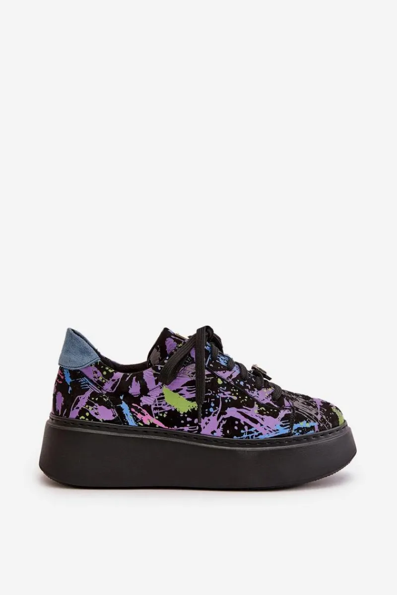 Buty sportowe marki Maciejka. Wykonane z naturalnej skóry z dbałością o szczegóły. Osadzone na masywnej platformie. Model klasycznie sznurowany z usztywnionym zapiętkiem. Noski zaokrąglone. Miękka, wkładka zapewni komfort podczas użytkowania. Na sznurówkach przypięta jest mała, biżuteryjna ozdoba. Przy wyborze rozmiaru prosimy sugerować się tabelą rozmiarów.